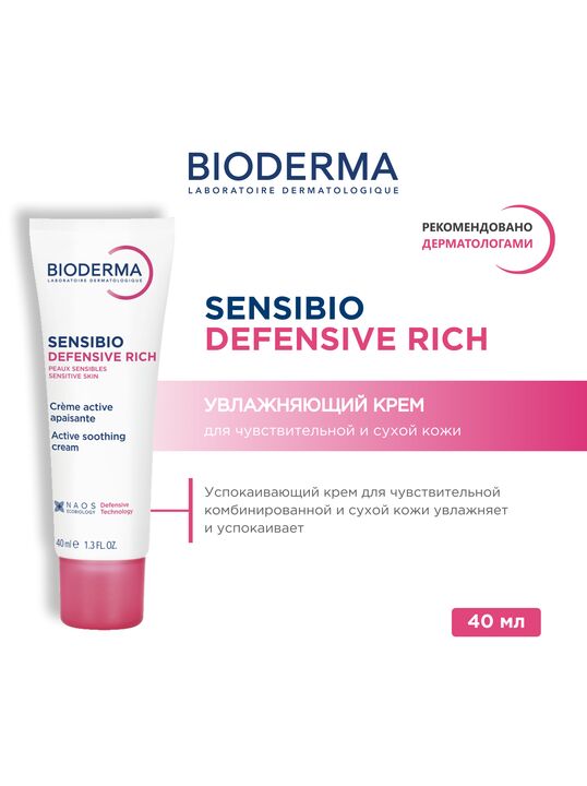 Покалывание, ощущение жжения и стянутости, зуд - подобные признаки чувствительности кожи испытывает более 60% населения планеты. Помимо природного нарушения биологической функции кожи жители городов сталкиваются с приобретенной чувствительностью вследствие влияния агрессивных факторов среды. Крем Биодерма Сенсибио Дефенсив поможет в решении проблемы чувствительности, светочувствительности кожи и их комбинации независимо от причины появления. Средство за 30 секунд устраняет покалывание и надолго успокаивает кожу, восстанавливает комфорт. Технология Défensive нацелена на усиление природных защитных функций эпидермиса, в перспективе укрепляет механизм самозащиты от агрессивных факторов среды. Крем с насыщенной обволакивающей текстурой питает и смягчает кожу, обладает высокой переносимостью, протестирован под дерматологическим контролем. Отличная база под макияж. Доказанная эффективность:
