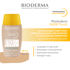 Bioderma Photoderm Nude touch SPF50+ (Биодерма Фотодерм Флюид солнцезащитный с тоном SPF50+) для жирной и комбинированной кожи.Солнцезащитный флюид Биодерма Фотодерм SPF50+ - не просто средство защиты от ультрафиолета! Продукт мгновенно устраняет жирный блеск и скрывает несовершенства, сохраняя...