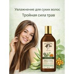 Шампунь тройная сила трав. Шампунь для сухих волос, требующих увлажнения. Тройная сила природы исходящая из трав. Компоненты растительного происхождения: сок алоэ, экстракт облепихи, экстракт крапивы. 94% компонентов растительного происхождения. Веганский продукт. Не содержит SLS и SLES. Формула...