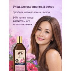 Шампунь тройная сила полевых цветов. Шампунь для окрашенных волос, поврежденных парикмахерскими процедурами. Тройная сила природы исходящая из полевых цветов. Компоненты растительного происхождения: экстракт дикой мальвы, экстракт гибискуса, экстракт дикой фиалки. 94% компонентов растительного...