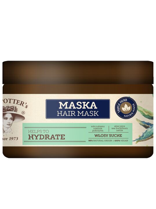 Маска тройная сила трав. Кремовая маска для сухих волос, требующих увлажнения. Тройная сила природы исходящая из трав. Компоненты растительного происхождения: сок алоэ, экстракт облепихи, экстракт крапивы. 98% компонентов растительного происхождения. Формула без силикона. Не содержит минеральных масел. Не содержит искусственных красителей. Веганский продукт. Способ использования: втереть в вымытые волосы и оставить на 3-5 минут. Тщательно прополоскать.