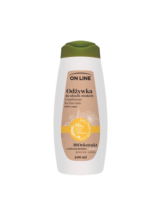 Кондиционер для тонких волос, склонных к жирности. 98% ингредиентов натурального происхождения. Веганская формула включает в себя БИО экстракт зеленого чая*, а также экстракты арники и розмарина. * активный ингредиент сертифицирован Ecocert в соответствии со стандартом COSMOS. Способ применения: Нанести на вымытые волосы и оставить на 3-5 минут. Тщательно прополоскать. Меры предосторожности: Избегайте попадания в глаза. При попадании в глаза немедленно промойте их водой. Условия хранения: Хранить при температуре от 4 до 25 градусов С в сухом месте