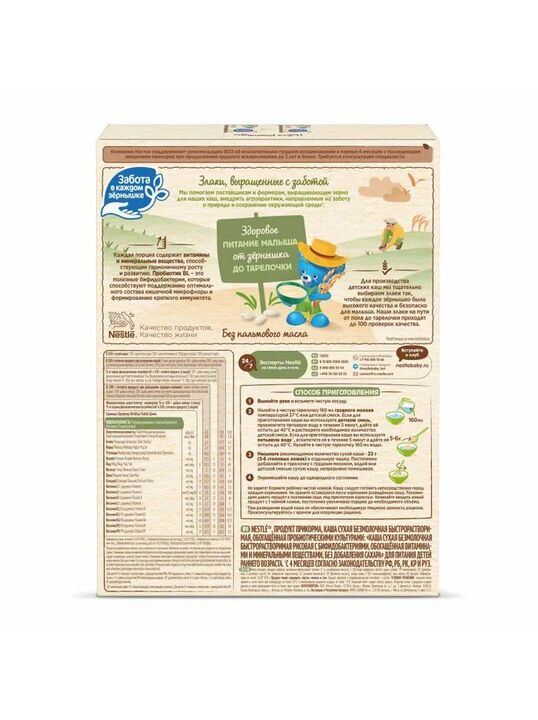 Безмолочная рисовая каша для питания детей старше 4 месяцев согласно законодательству РФ.