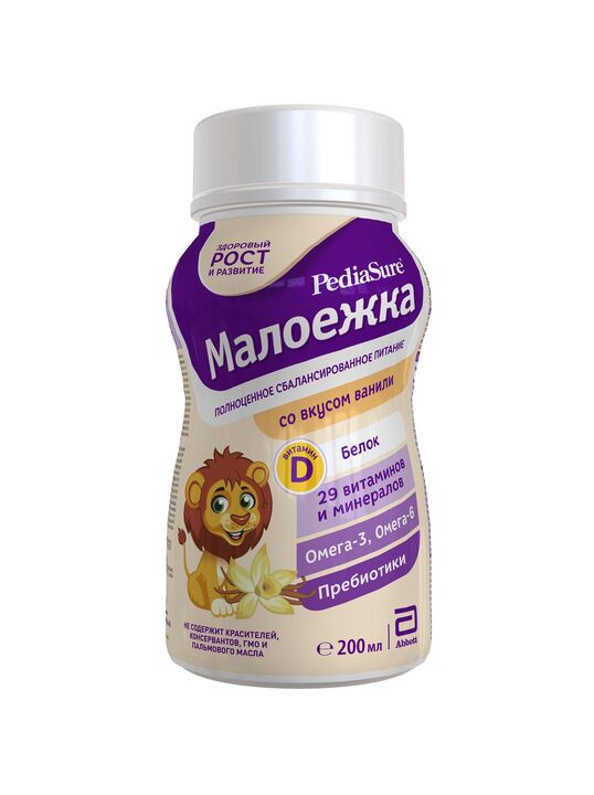 PediaSure Малоежка со вкусом ванили - это вкусный питательный напиток, который дополнит несбалансированную еду питательными веществами, чтобы ребёнок получал всё самое необходимое для здорового роста, развития и укрепления иммунитета*. Предназначен для питания детей от 1 года до 10 лет, подходит для ежедневного употребления.