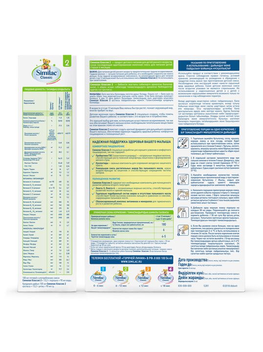 Поддержание иммунитета Similac 2 содержит пребиотики, которые поддерживают здоровье кишечника, что укрепляет естественные защитные функции организма. Similac 2 содержит нуклеотиды, поддерживающие иммунную систему малыша. Здоровый рост и развитие Similac 2 содержит незаменимые жирные кислоты, кальций, витамины и минералы, необходимые для здоровья и полноценного развития ребенка первого года жизни. Тщательно подобранный состав жиров способствует лучшему усвоению кальция.