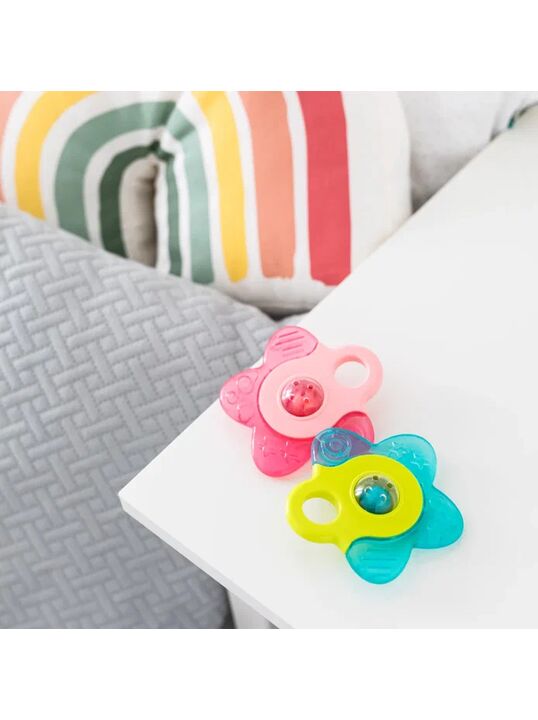 Прорезыватель можно охлаждать в холодильнике. Холод снимает боль во время прорезывания зубов - Контрастные цвета.