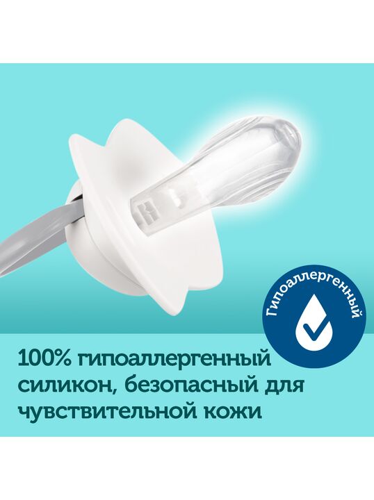 Силиконовая пустышка изготовлена из 100% гипоаллергенного силикона. Устойчива к деформации.