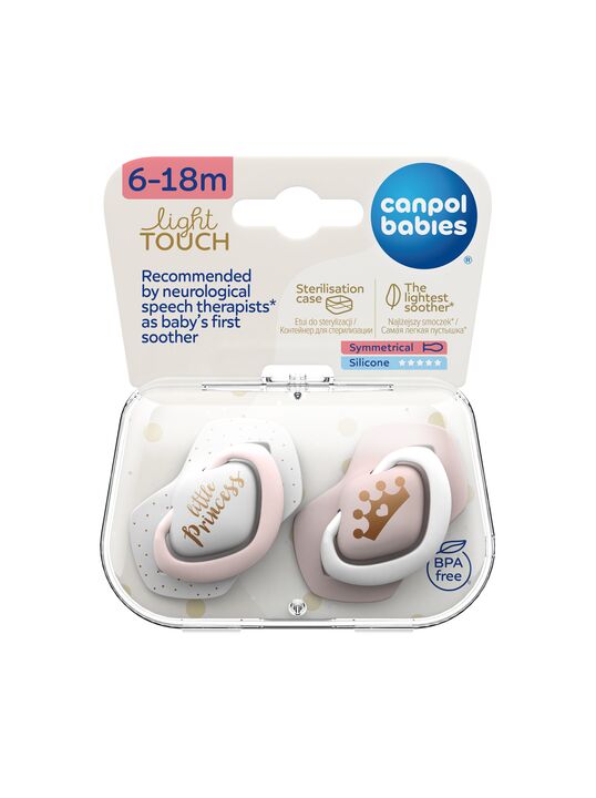 Пустышка силиконовая симметричная Canpol Babies Royal baby, 6-18 мес, 2 шт., розовый
