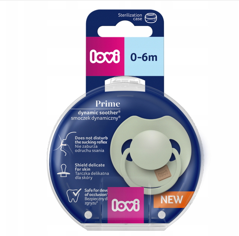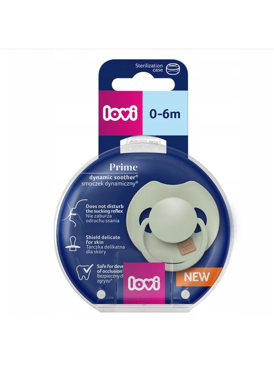 Соска пустышка для новорожденных силиконовая 0-6 Lovi коллекции Prime имеет уникальный дизайн, разнородный силикон и симметричную форму, повторяющую форму груди мамы. Приятный на ощупь материал пустышки. Не нарушает сосательный рефлекс, естественное развитие речи и прикуса, предотвращает рефлекс жевания соски, позволяет малышам свободно дышать и глотать слюну. Соска динамическая и изготовлена из гетерогенного силиконового слоя, который обеспечивает сжимание и расширение при сосательных движениях младенца; симметричная форма основана на структуре груди мамы. Легкое основание имеет важное значение для правильного развития полости рта малыша. Не отягощает прикус и гарантирует легкое дыхание. Благодаря специальным отверстиям на корпусе, силиконовые соски хорошо вентилируется, что позволяет избежать раздражения на нежной коже ребенка. В комплекте удобный футляр-чехол для хранения и стерилизации. Ортодонтическая детская пустышка с кольцом не содержит Бисфенол А. Кольцо позволяет легко прикреплять держатель. Поддерживает грудное вскармливание. Пустышки для новорожденного доступны в нескольких уникальных коллекциях и в различных размерах - 0-6, 6-18 и 18+ мес месяцев - они растут вместе с вашим ребенком. Прекрасно подойдет, как подарок на день рождения ребенка, на выписку, рождение, 1 годик или новый год. Идеально для таких наборов как, комплект для новорожденного или сумка в роддом. Сделано в Польше.