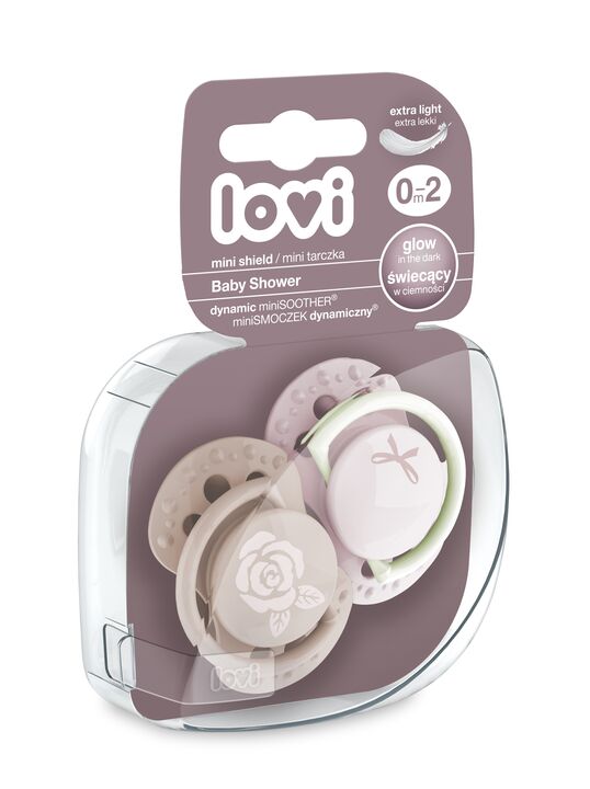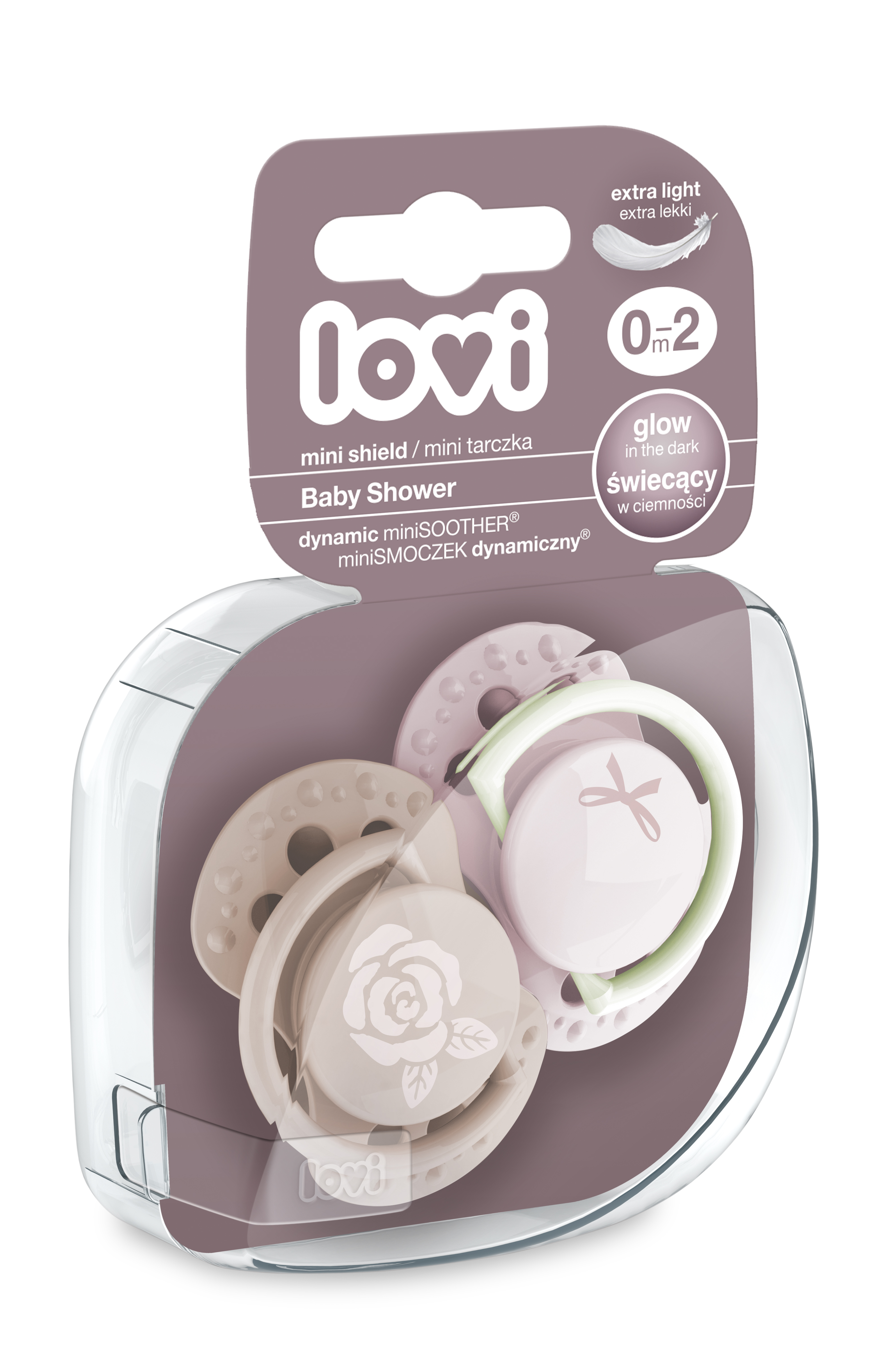 Пустышка силиконовая Lovi коллекции Baby Shower имеет уникальный дизайн, разнородный силикон и симметричную форму, повторяющую форму соска.