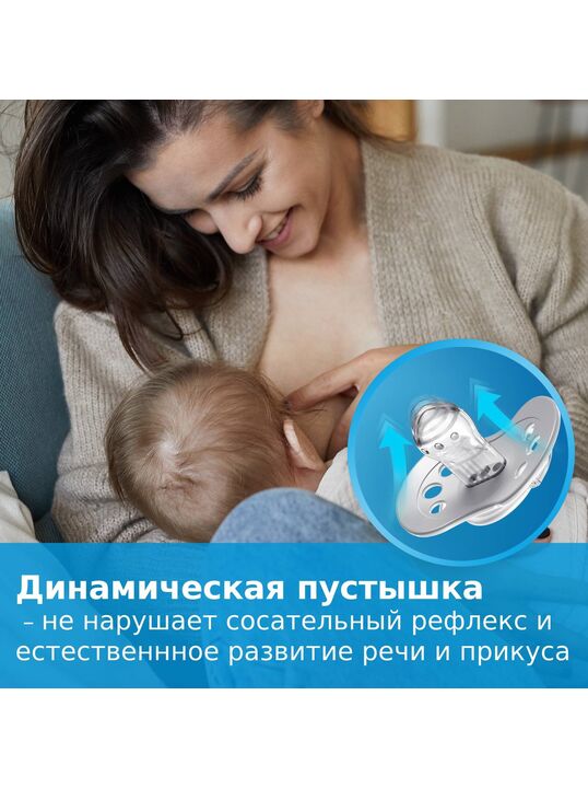 Не нарушает сосательный рефлекс, предотвращает рефлекс жевания соски, не нарушает естественное развитие речи и прикуса, позволяет малышу свободно дышать и глотать слюну.