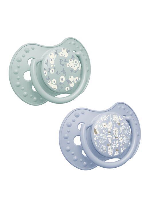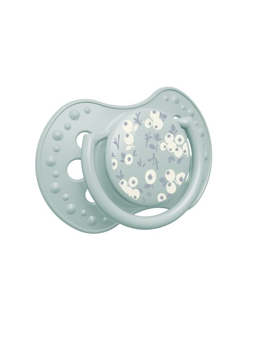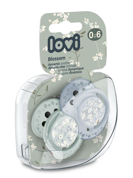 LOVI соска-пустышка силиконовая динамическая №2 BLOSSOM IVORY 0-6 месяцев для мальчика изготовлена из гетерогенного силиконового слоя, который обеспечивает сжимание и расширение соски при сосательных движениях ребенка; симметричная форма соски основана на структуре соска.