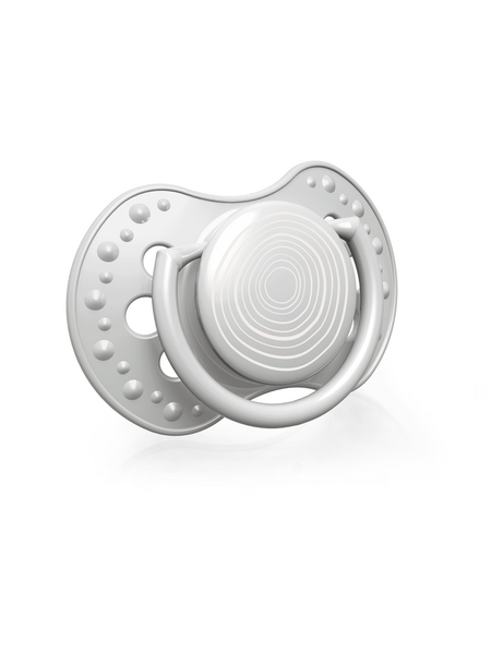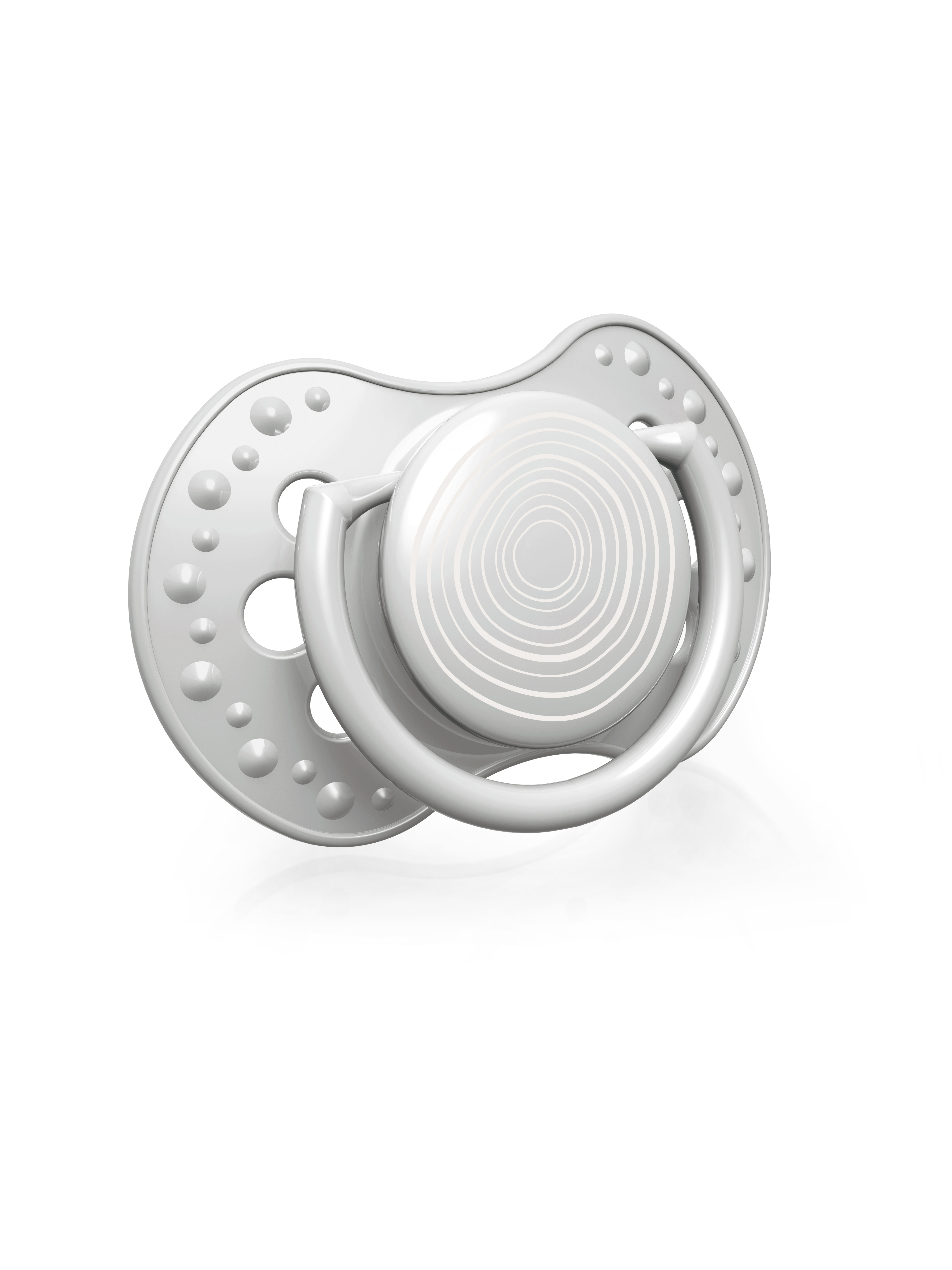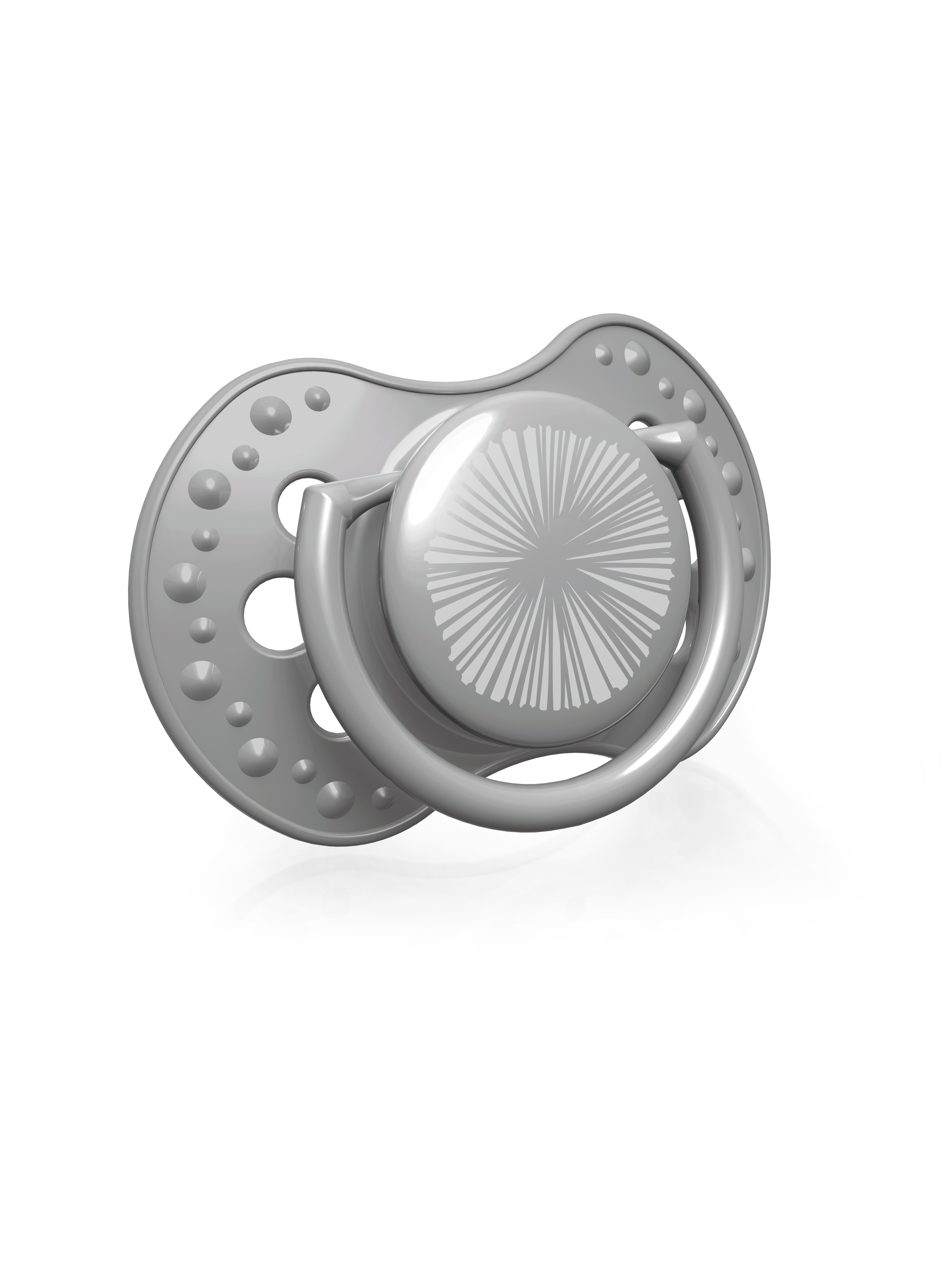 Соска пустышка изготовлена из гетерогенного силиконового слоя, который обеспечивает сжимание и расширение соски при сосательных движениях ребенка; симметричная форма соски основана на структуре соска.