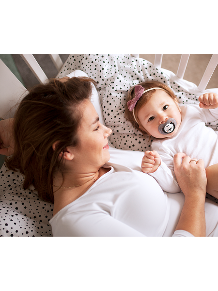 Пустышка силиконовая LOVI Salt&Pepper имеет уникальный дизайн, разнородный силикон и симметричную форму, повторяющую форму соска.