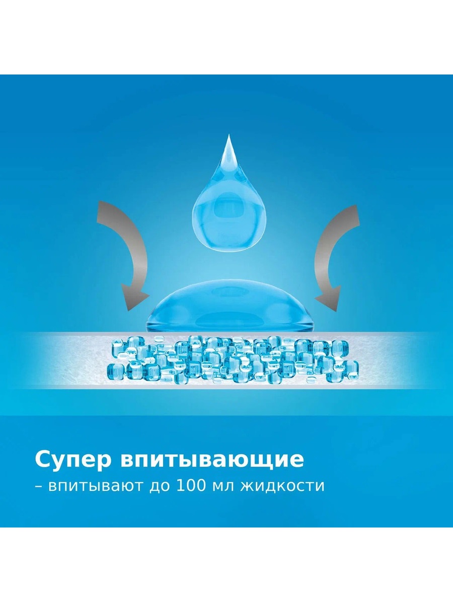 Внутренний слой преобразует влагу в гель и удерживает ее внутри вкладыша.