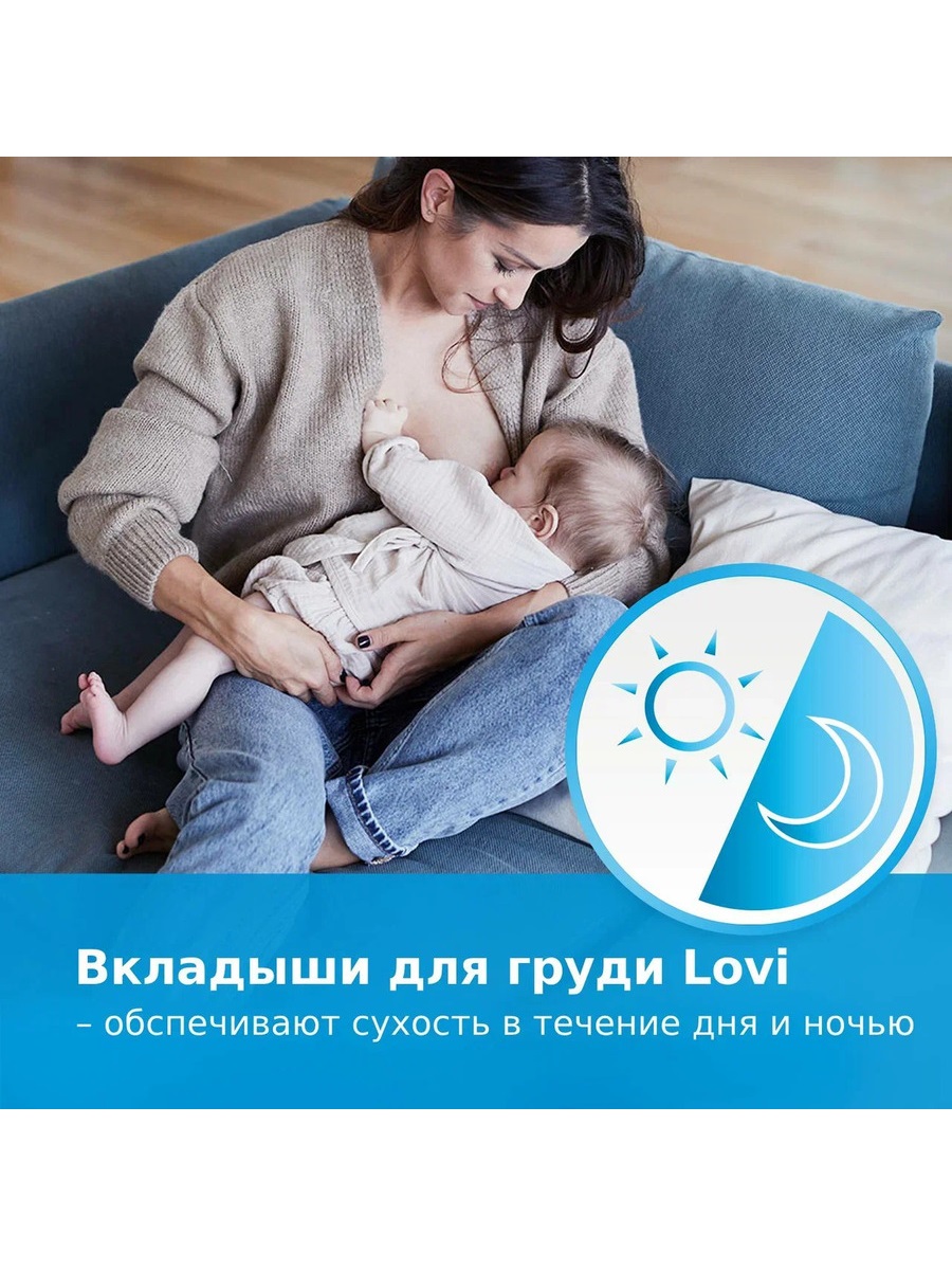 Вкладыши для груди Lovi очень тонкие, они хорошо впитывают влагу и обеспечивают сухость днем и ночью.