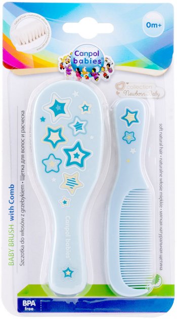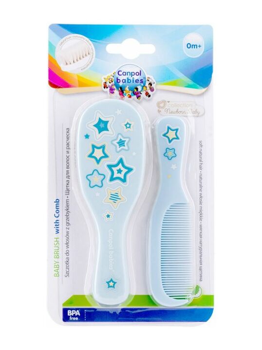 Детская расческа и щетка Canpol babies Newborn Baby, мягкая натуральная щетина, от 0 мес, голубая