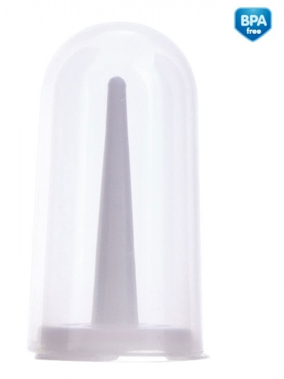 У зубной щетки удобная форма, надевается на палец и позволяет добраться даже до самых труднодоступных мест.