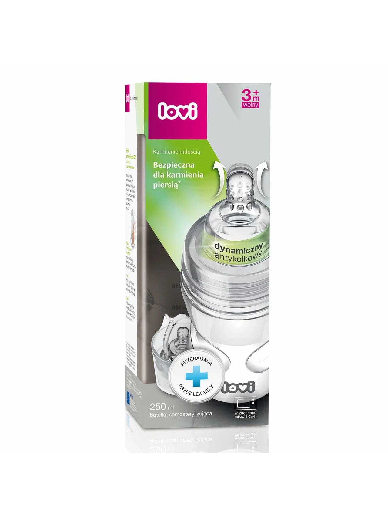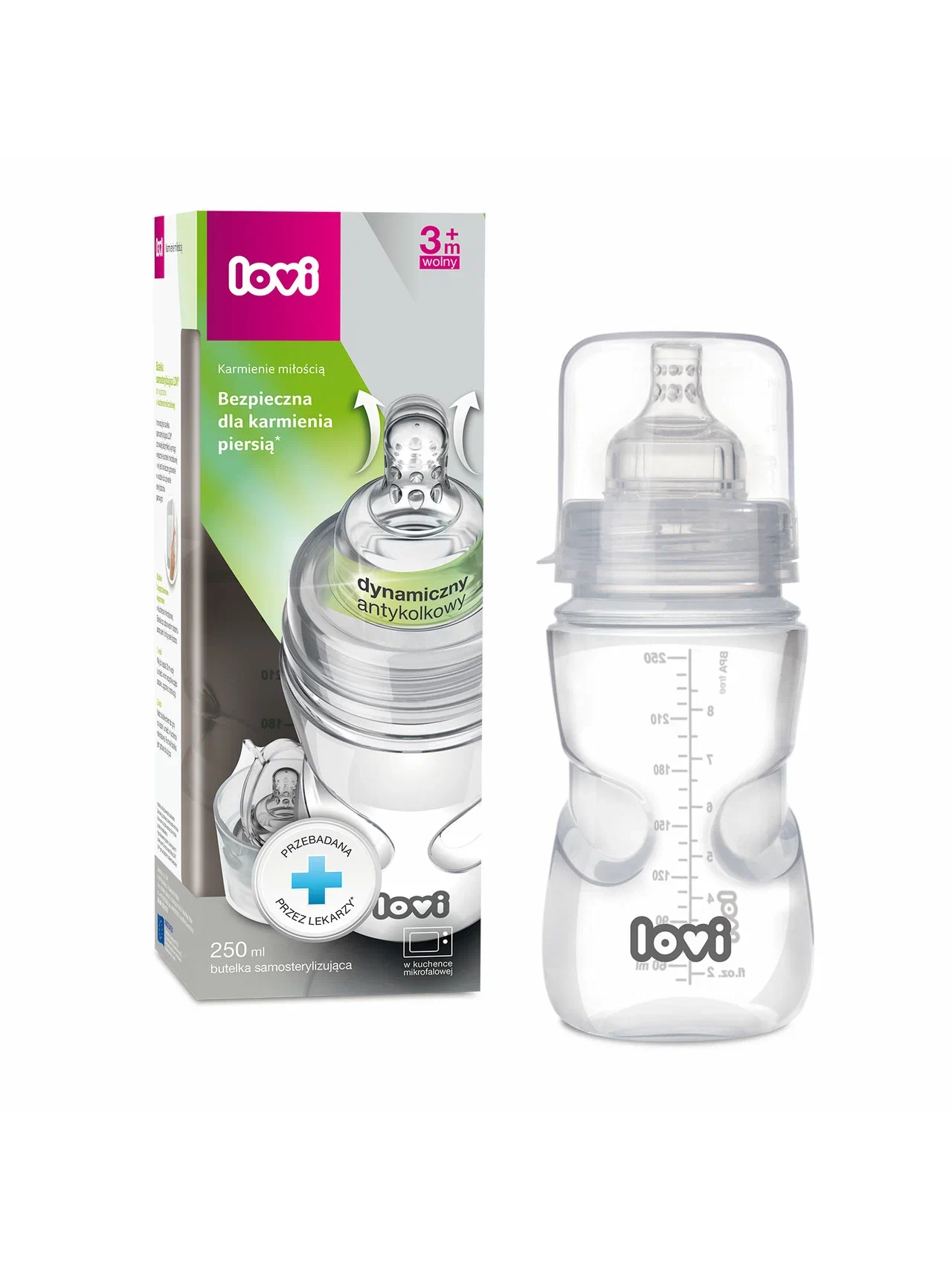 Антиколиковая бутылочка для кормления Lovi с динамической соской была создана специально для малышей. Гарантия легкого начала грудного вскармливания; позволяет сочетать грудное вскармливание и кормление из детской бутылочки. Детская бутылочка для кормления оснащена уникальной динамической соской из тонкого силикона, с жестким профилированным основанием и системой отвода воздуха Super Vent.