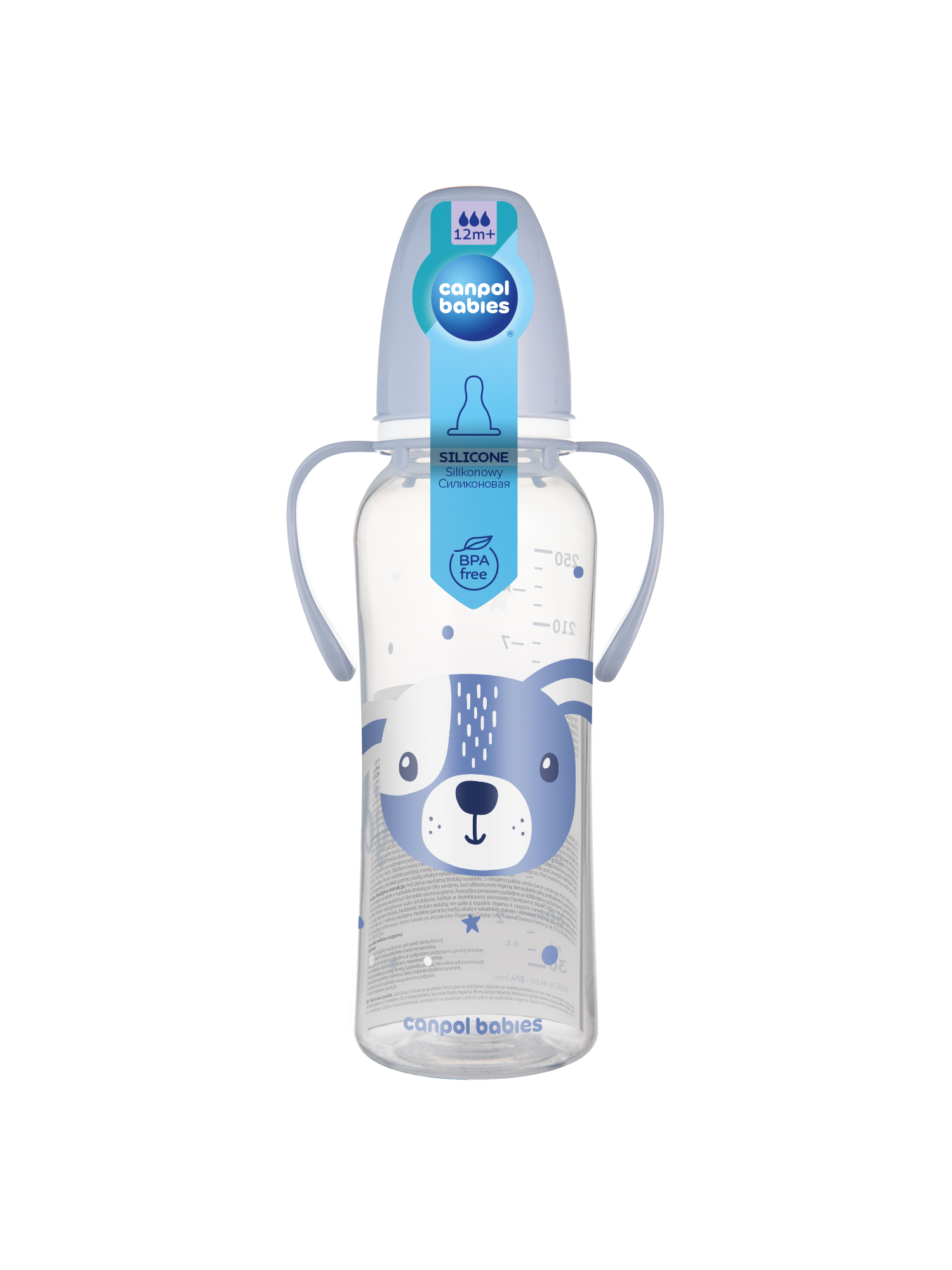Canpol бутылочка с узк.горлышком и ручками CUTE ANIMALS 250мл. 11/845_blu