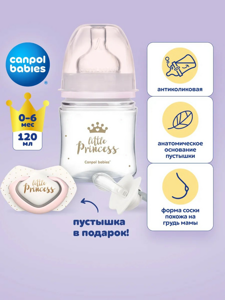Canpol Набор бутылочка 120мл +пустышка Royal Baby Розовый 0+ 0311rus