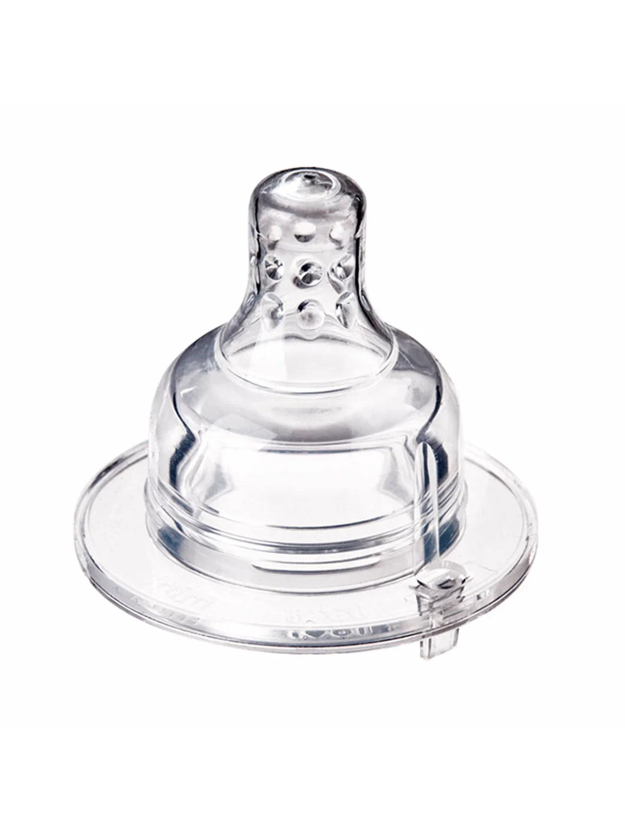 Плотное и широкое основание особой формы обеспечивает правильный захват, облегчая дыхание и препятствуя кусанию соски во время кормления.