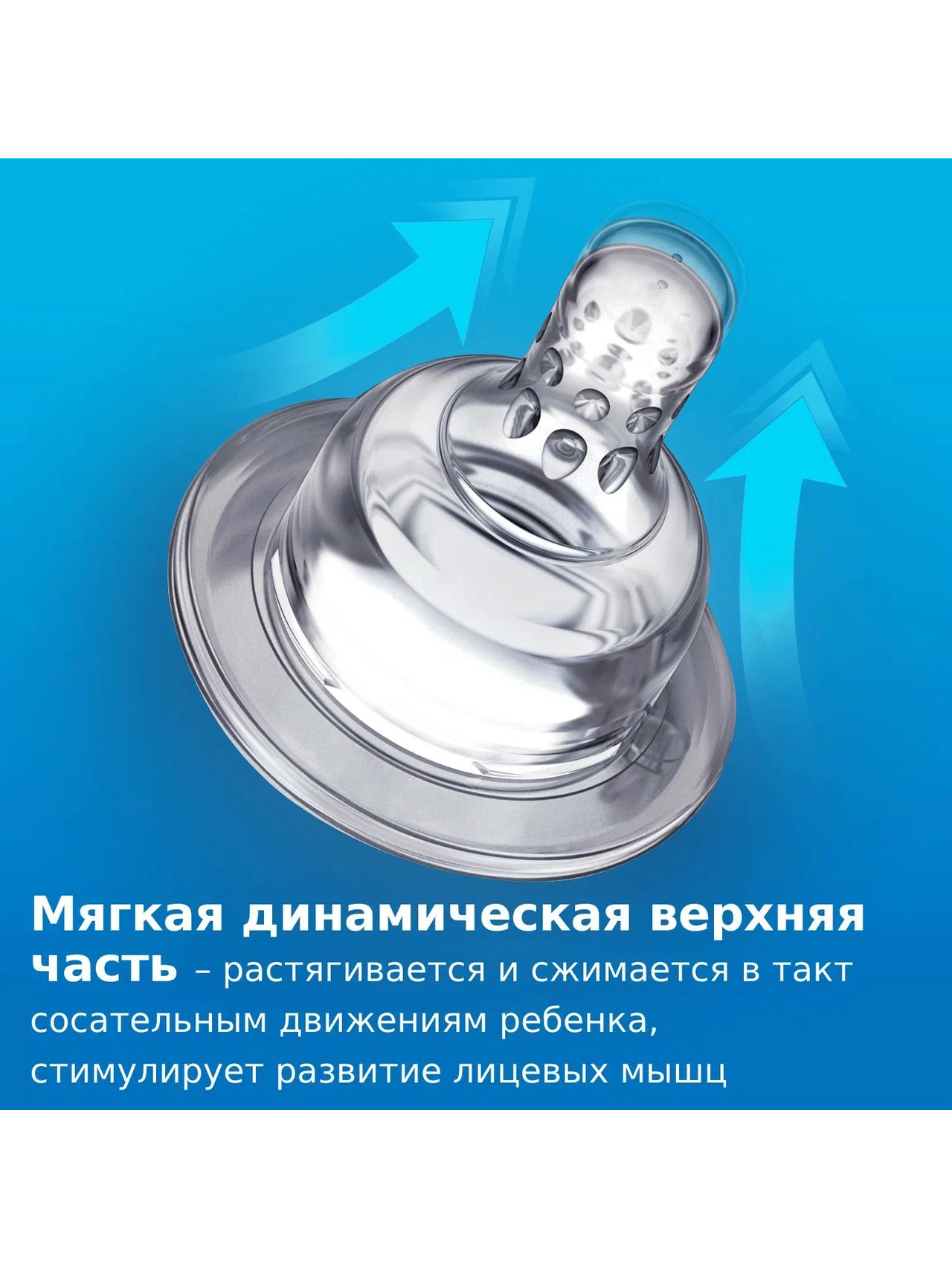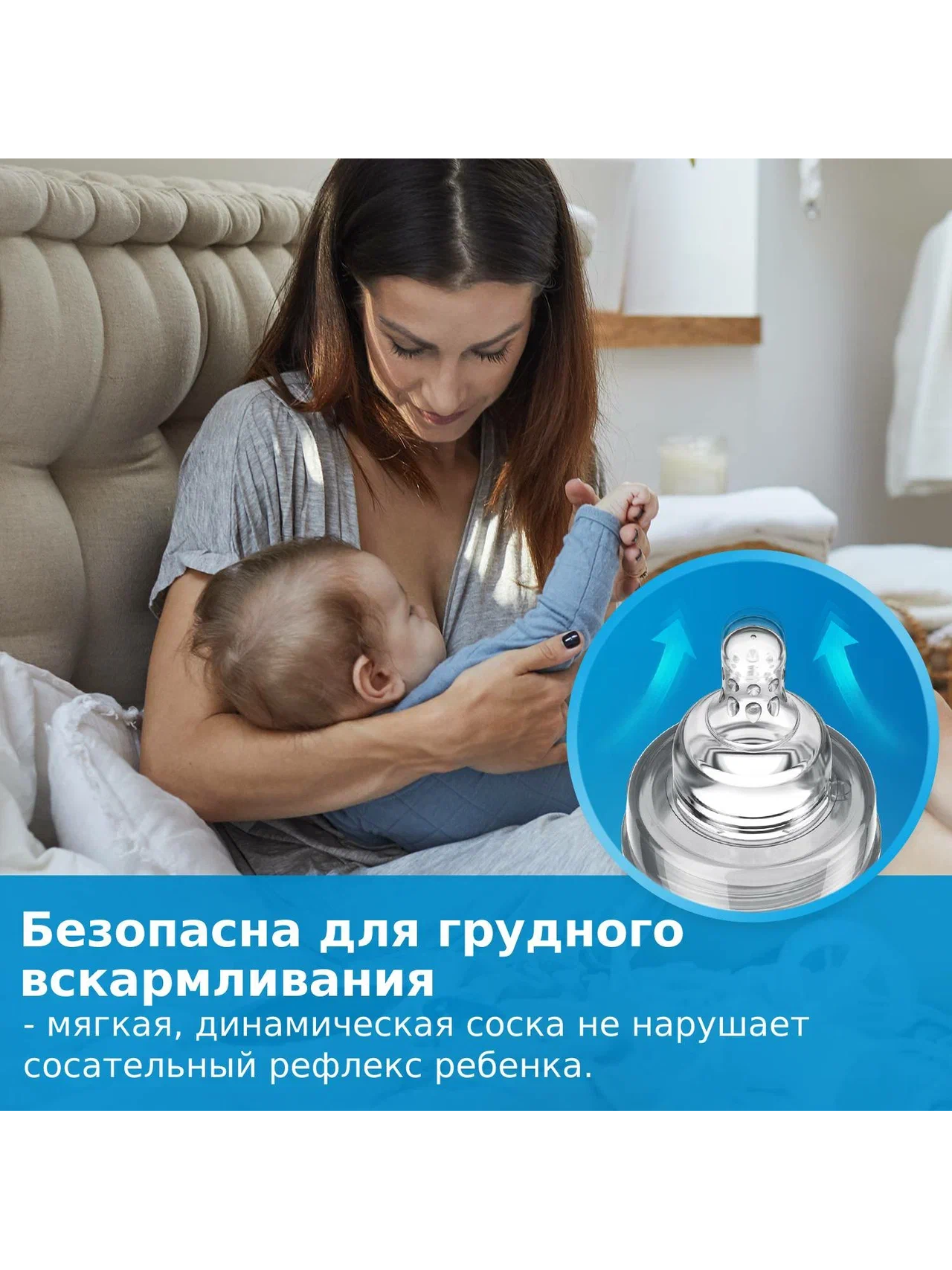 • Мягкая и динамическая соска на бутылку не нарушает сосательный рефлекс.