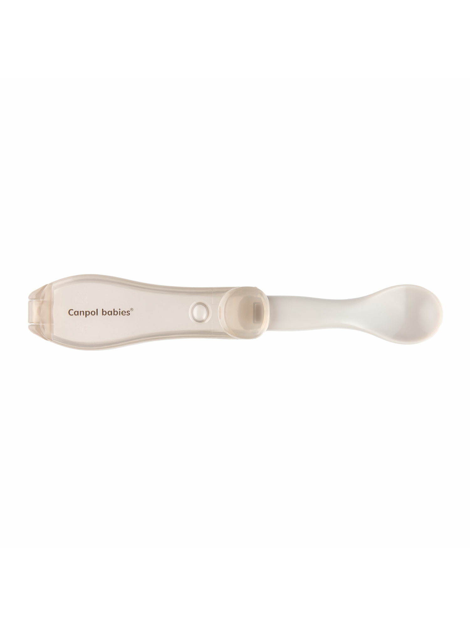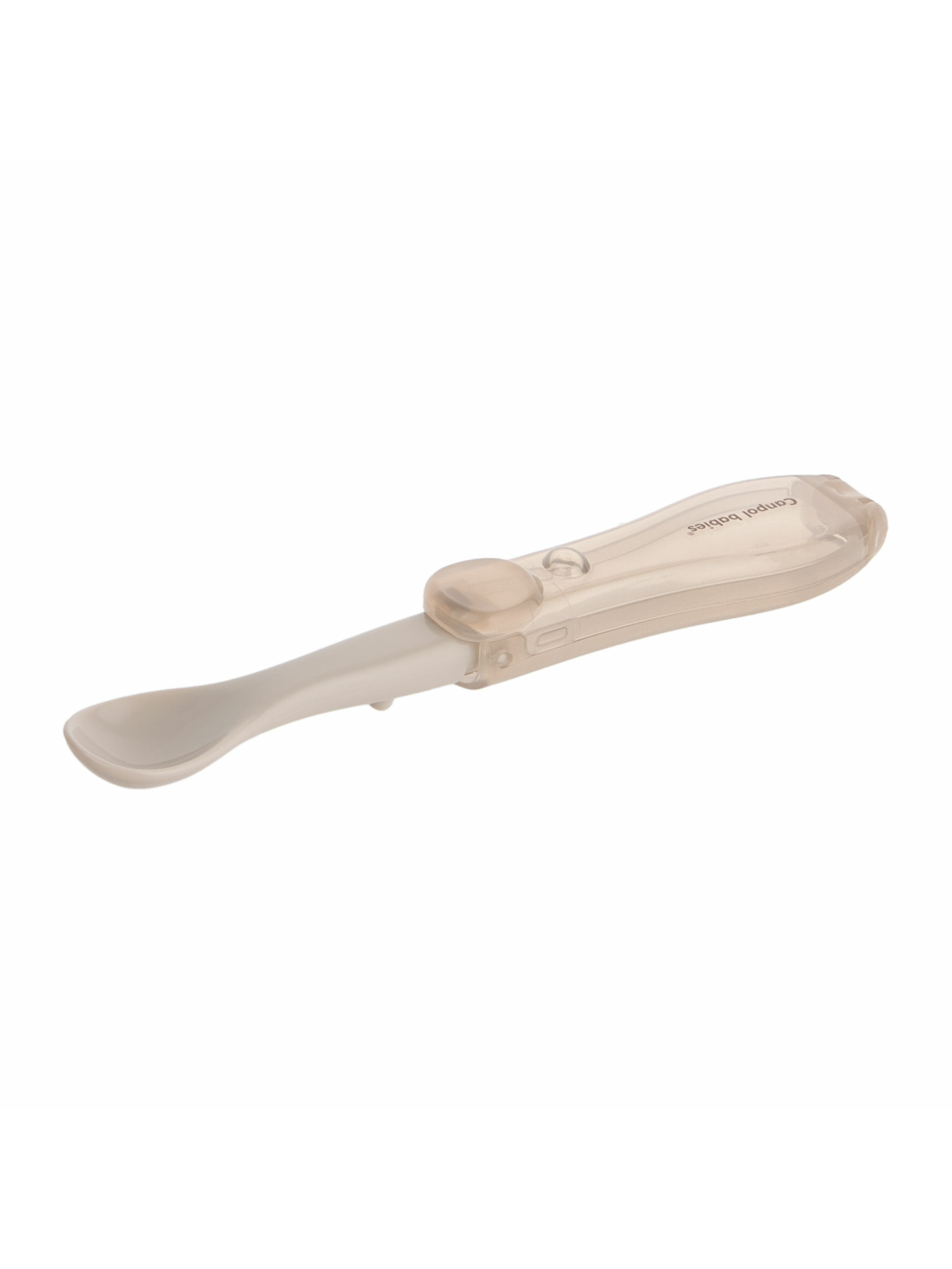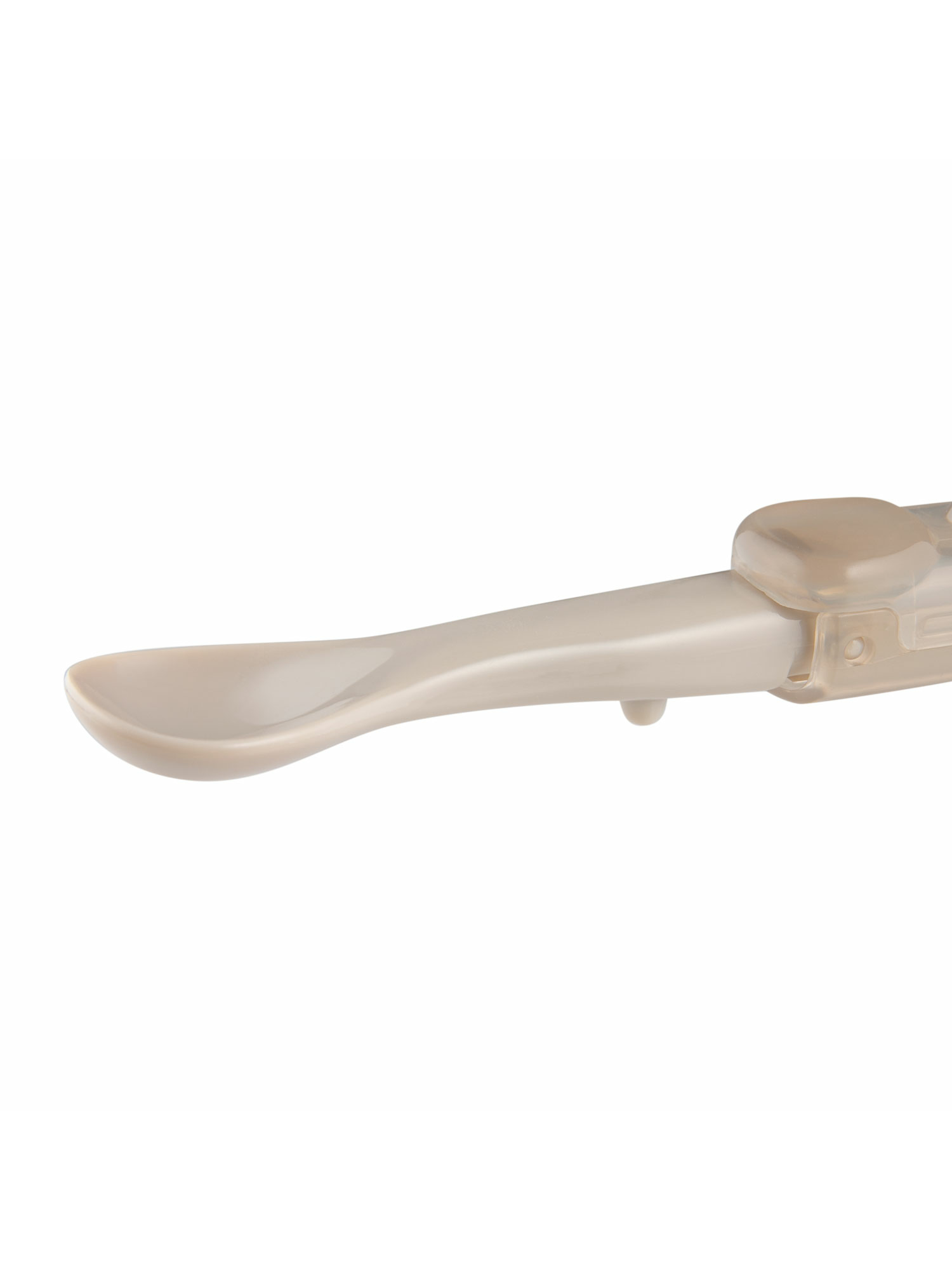 Хотите дать малышу теплый суп, йогурт или фруктовый мусс на ходу? Складная дорожная ложка — идеальное решение для удобного кормления вне дома. Ложка открывается одним простым щелчком и готова к использованию, где бы вы ни захотели. Ложка складывается в удобный небольшой размер, легко помещается в сумку или рюкзак. Футляр, встроенный в ручку ложки, предотвращает накопление бактерий, благодаря чему ложка остается чистой, а ее использование гигиенично и безопасно для ребенка. После еды ее можно носить с собой, не рискуя испачкать сумку или рюкзак. Закругленные края не раздражают нежные десны малыша, поэтому ложки также отлично подойдут при первых попытках самостоятельного приема пищи. Ложка предназначена для детей старше 4 месяцев.