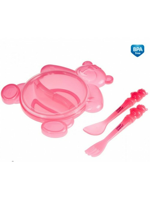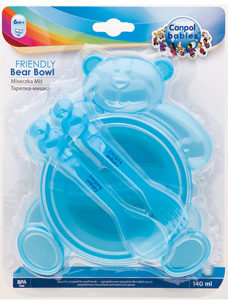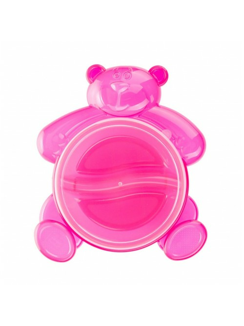 Небьющаяся тарелка в форме медвежонка, с двумя отделениями превратит кормление в увлекательную игру.