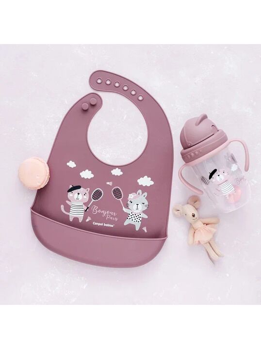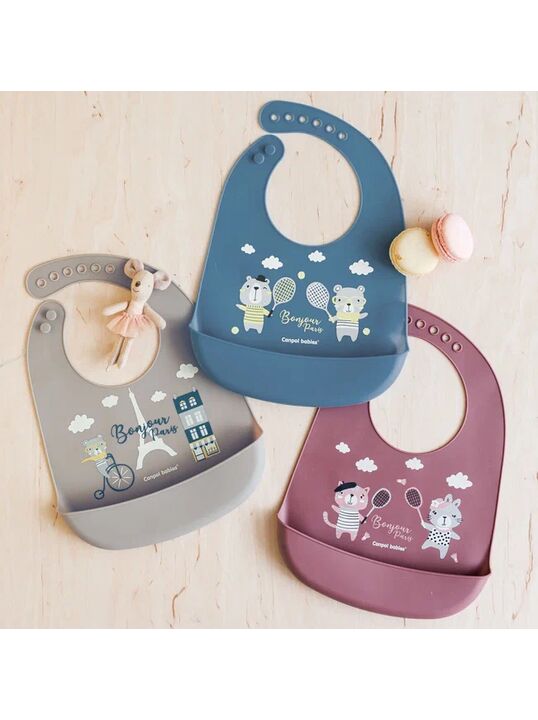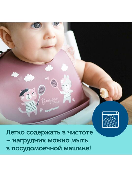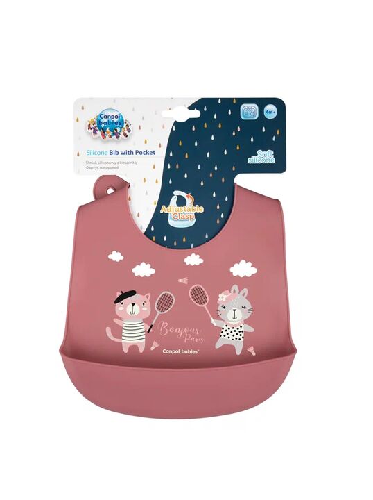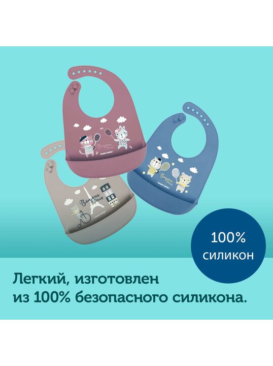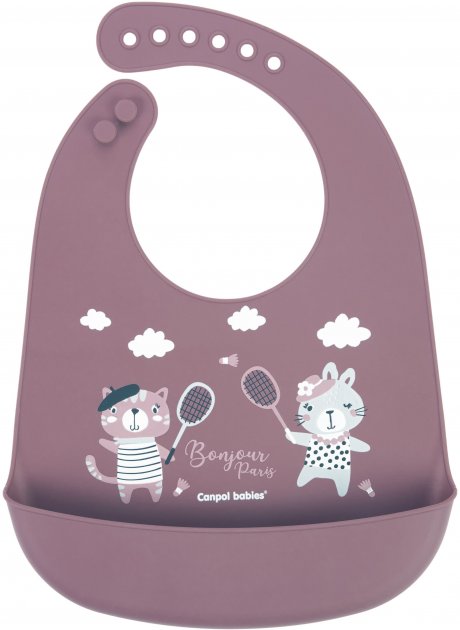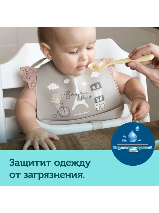 Нагрудник силиконовый с карманом Canpol babies коллекции Bonjour Paris изготовлен из мягкого и безопасного силикона.