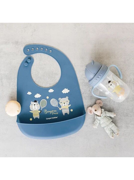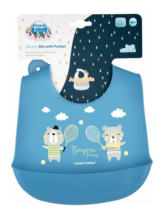 Нагрудник силиконовый с карманом Canpol babies коллекции Bonjour Paris изготовлен из мягкого и безопасного силикона.
