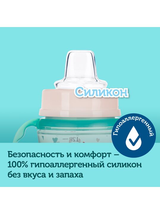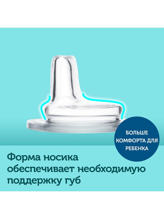 Безопасен для чувствительных десен, а также помогает ребенку легко научиться пить самостоятельно.