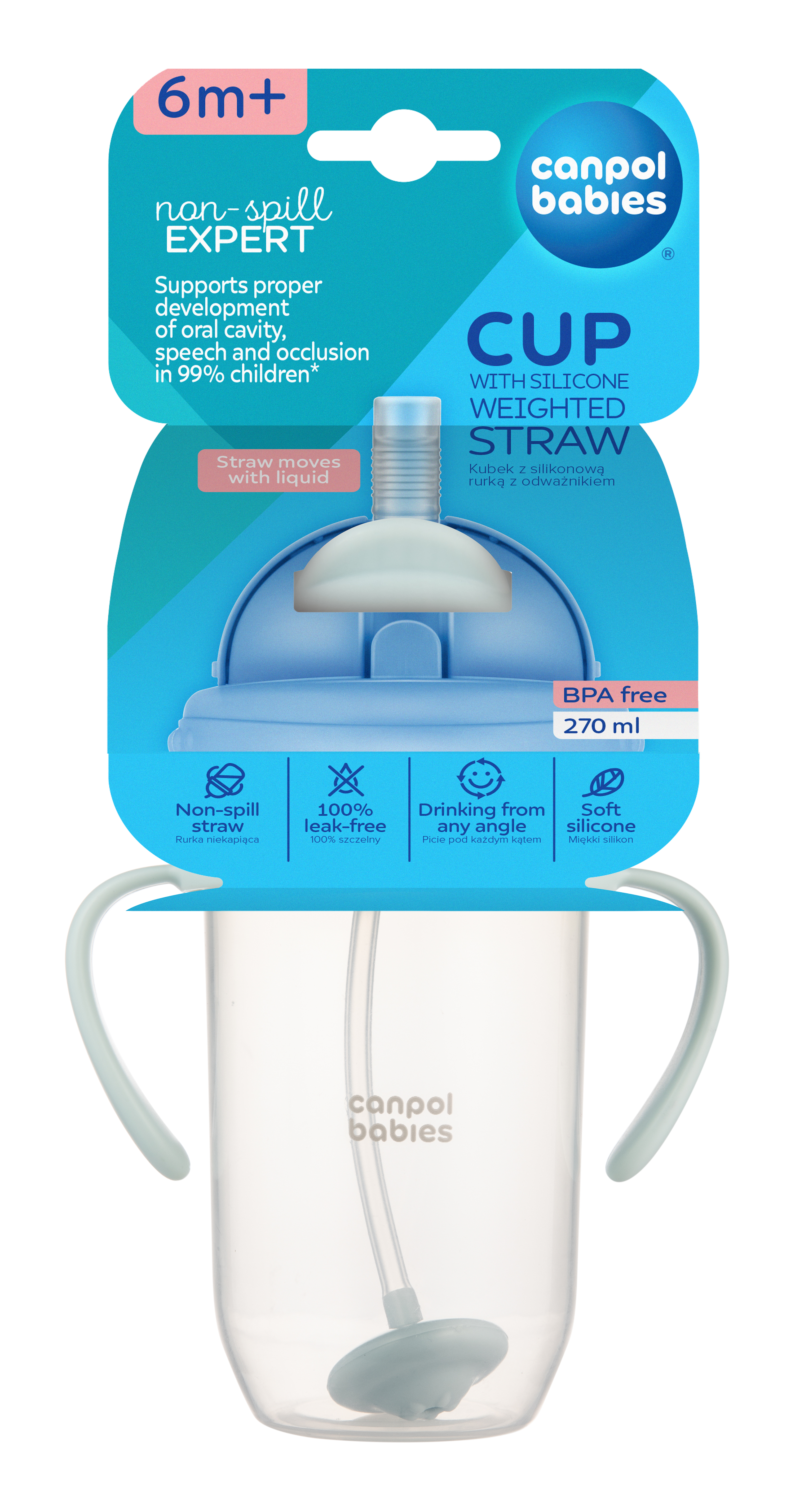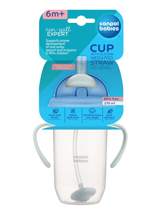 Canpol поильник непроливающий 270 мл с трубочкой и утяжелителем зеленый 56/623_gre
