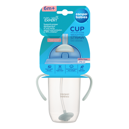 Поильник непроливайка с трубочкой и грузиком Canpol babies идеально подходит для детей, которые начинают учиться пить самостоятельно. Поддержка в правильном развитии полости рта, речи и прикуса у 99% малышей*. *По результатам исследования, проведенного неврологом-логопедом в группе из 44 детей в возрасте 6-36 мес. Специальная мембрана в трубочке пропускает жидкость только тогда, когда ребенок пьет и сжимает трубочку, тем самым предотвращает проливание жидкости. Уникальный силиконовый утяжелитель позволяет пить под любым углом, даже когда детский поильник перевернут. Силиконовая, мягкая и гипоаллергенная трубочка разработана специально для чувствительных десен малыша. Бутылка для воды с прозрачным корпусом позволяет контролировать количество содержимого. Детская бутылочка с ручками, они позволяют легко держать её в детских руках. Идеально для малышей от 6 месяцев. Прекрасный подарок на 1 годик или ребенку на новый год, день рождения. Подходит для дома, прогулок и путешествий. Не содержит Бисфенол А. *Можно мыть в посудомоечной машине (без трубочки). *Можно использовать в микроволновой печи. Не рекомендуется использовать для газированных напитков. Густые жидкости (фруктовое пюре и т. п.) могут закупорить трубочку; пятна и известковый налет, которые могут появиться на трубочке из-за жесткой воды, сока или чая, не влияют на ее свойства. Разработано в Польше.