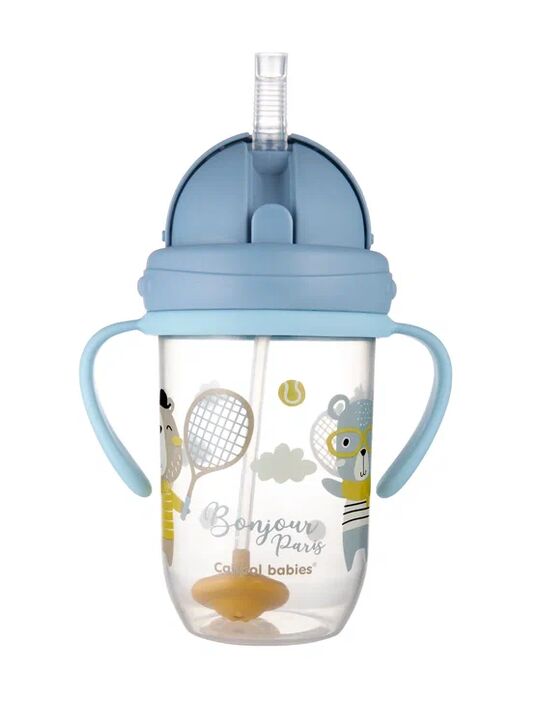 Поильник непроливайка Canpol babies Bonjour Paris с трубочкой и утяжелителем, 270 мл, голубой, от 6 мес