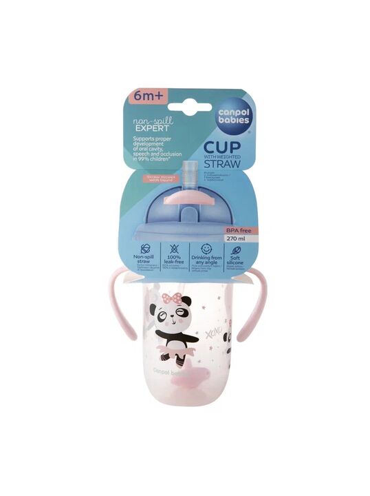Поильник непроливайка Canpol babies Exotic Animals с трубочкой и утяжелителем, 270 мл, розовый, от 6 мес
