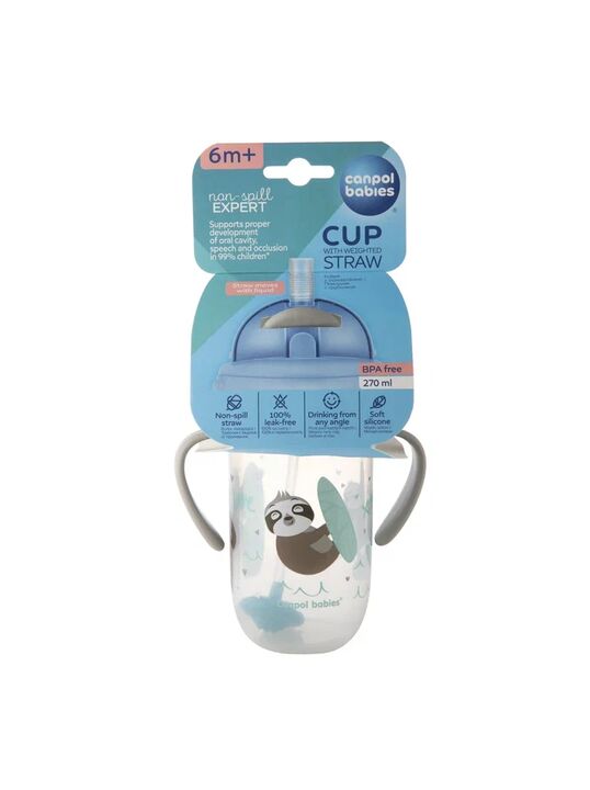 Поильник непроливайка Canpol babies Exotic Animals с трубочкой и утяжелителем, 270 мл, серый, от 6 мес