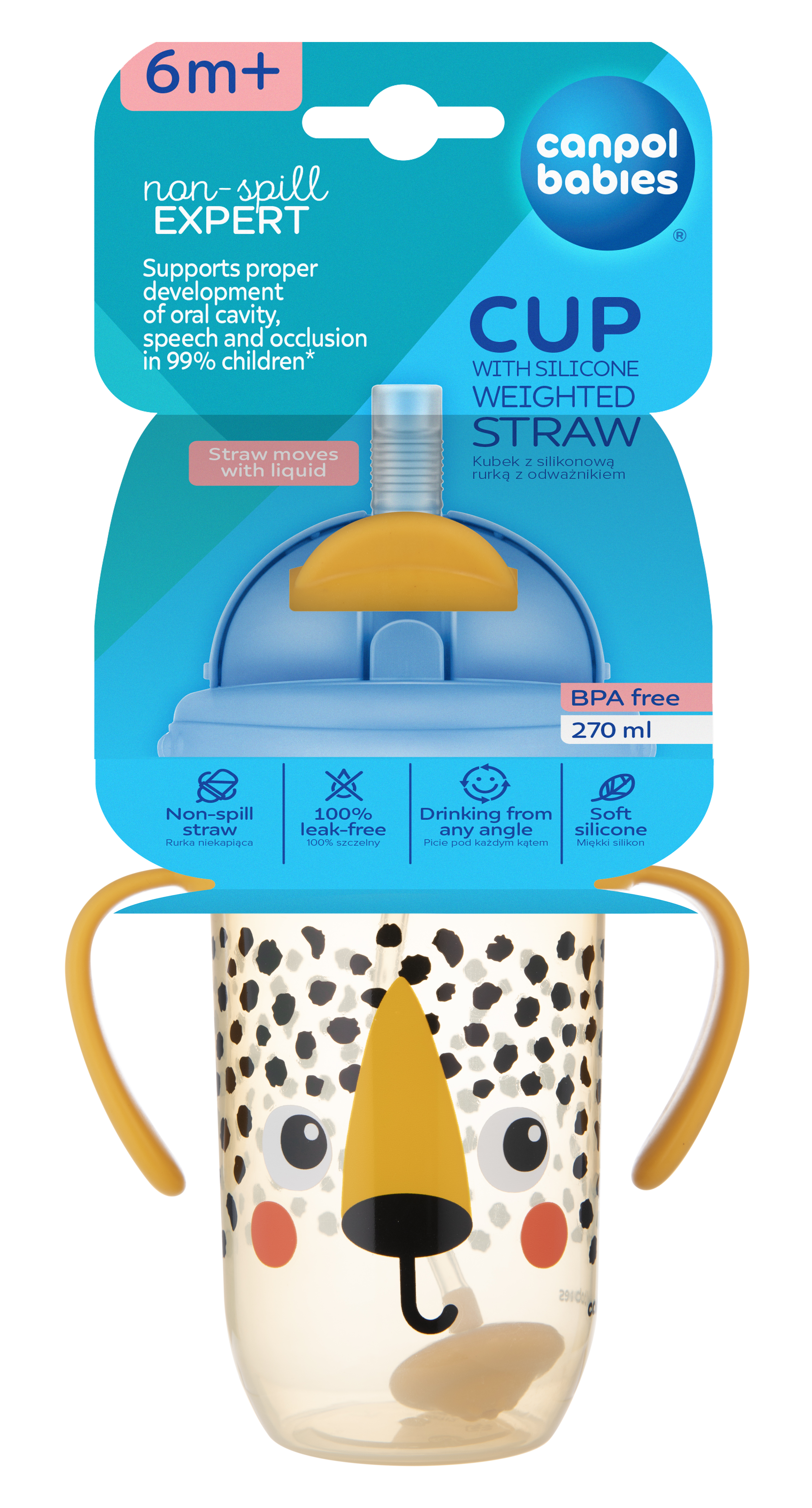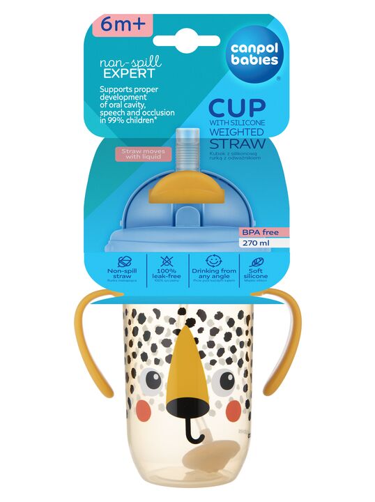 Canpol поильник непроливающийся 270мл с трубочкой и утяжелителем BabiesBoo гепард 56/617_ora