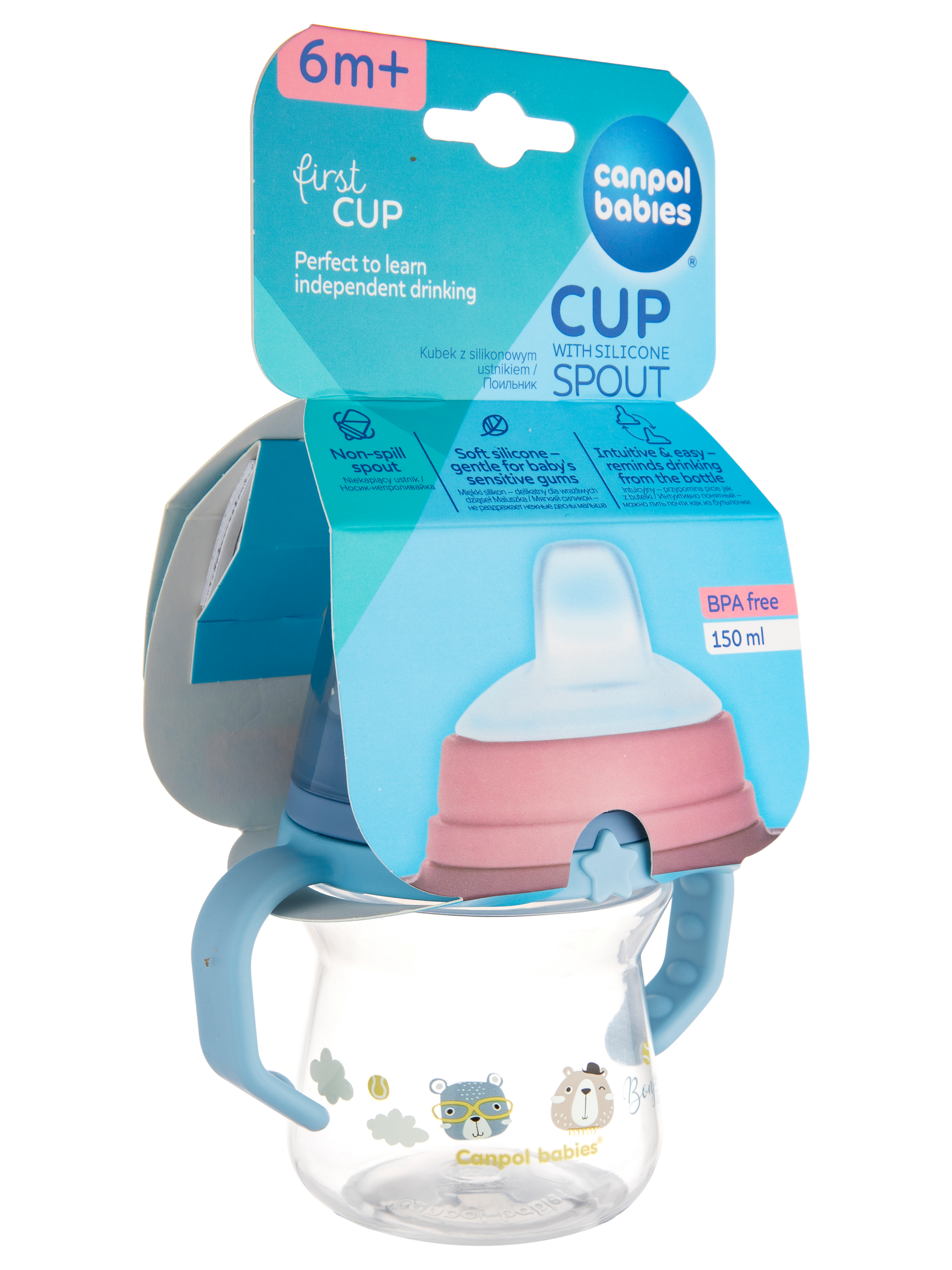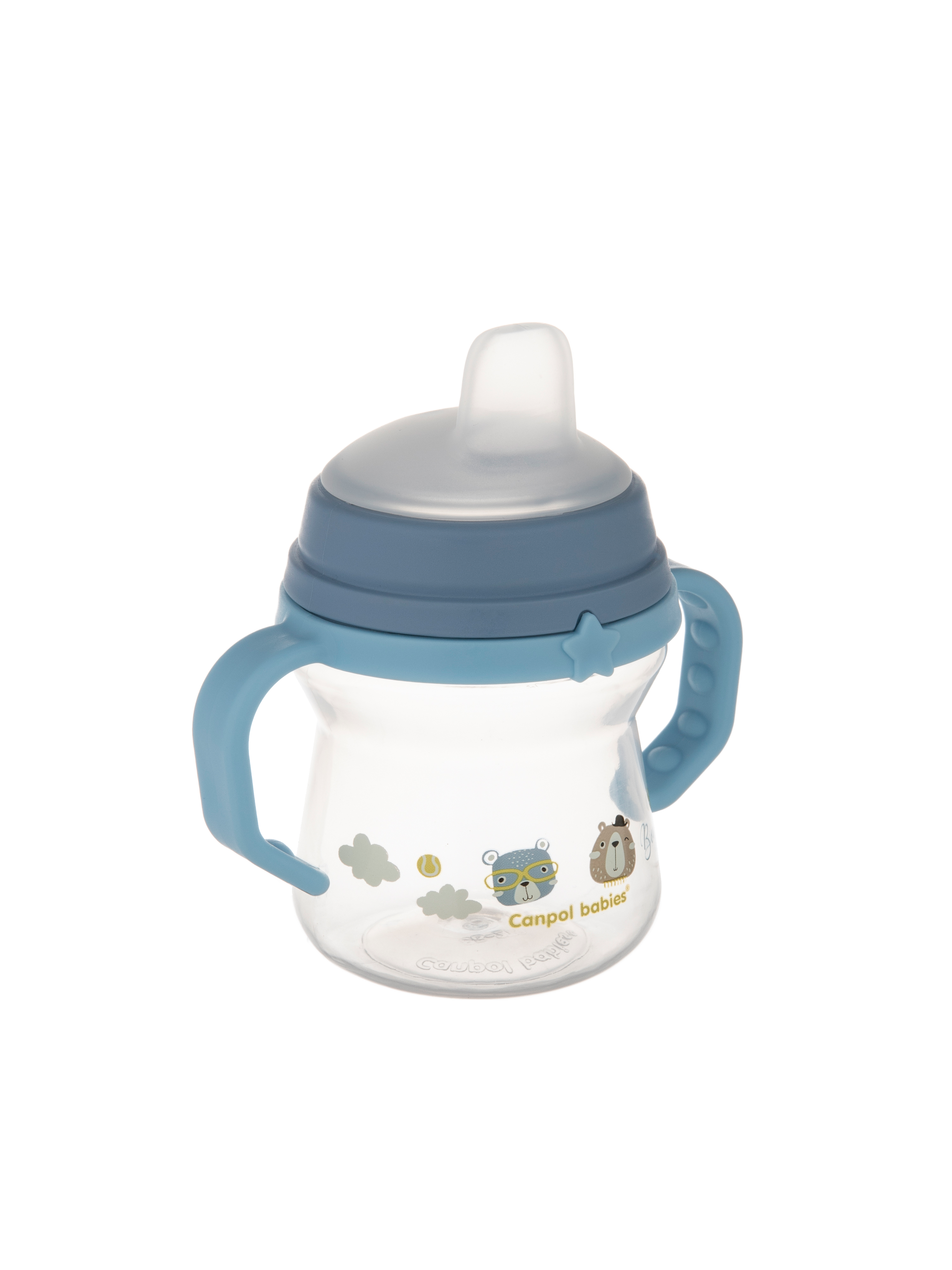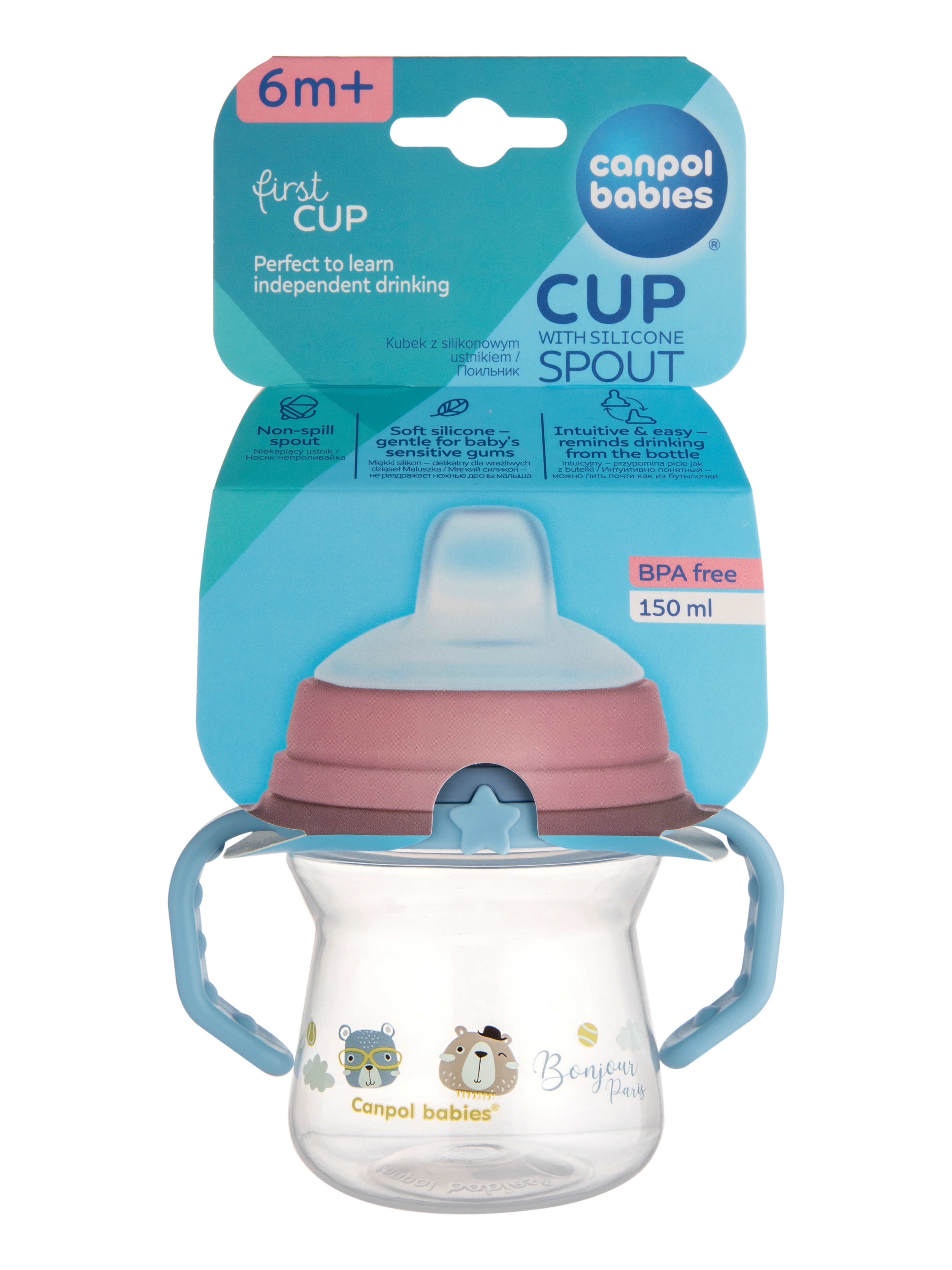 Canpol поильник непроливающийся FirstCup BONJOUR PARIS с мягким носиком 150мл. 56/612_blu /869950/