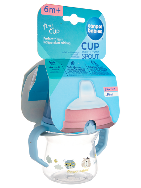 Новый поильник-непроливайка Canpol babies с мягким ночиком оказывает поддержку в правильном развитии полости рта, речи и прикуса у 99% детей*. Идеально подходит для детей, которые начинают учиться пить самостоятельно. Подходит для детей от 6 месяцев! Он оснащен удобными ручками, которые помогают ребенку держатьпоильник. Широкая горловина облегчает мытье и налив жидкости. Мягкий силиконовый носик не раздражает нежные десны ребенка. Сняв ручки, вы можете легко превратить поильник в бутылочку с водой для детей старшего возраста. Плотная крышка защищает носик от грязи.