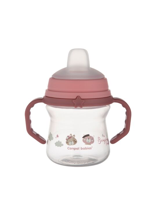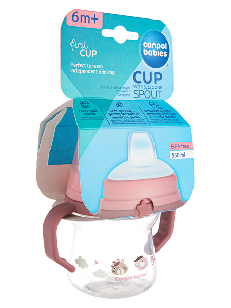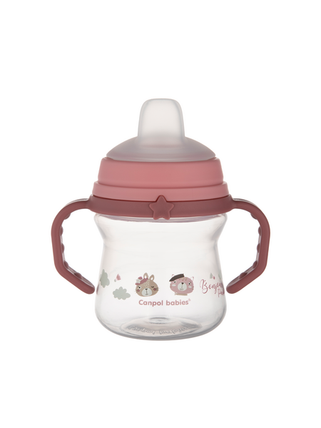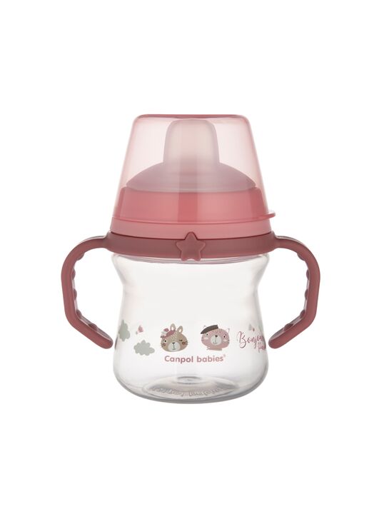 Новый поильник-непроливайка Canpol babies с мягким ночиком оказывает поддержку в правильном развитии полости рта, речи и прикуса у 99% детей*. Идеально подходит для детей, которые начинают учиться пить самостоятельно. Подходит для детей от 6 месяцев! Он оснащен удобными ручками, которые помогают ребенку держатьпоильник. Широкая горловина облегчает мытье и налив жидкости. Мягкий силиконовый носик не раздражает нежные десны ребенка. Сняв ручки, вы можете легко превратить поильник в бутылочку с водой для детей старшего возраста. Плотная крышка защищает носик от грязи.