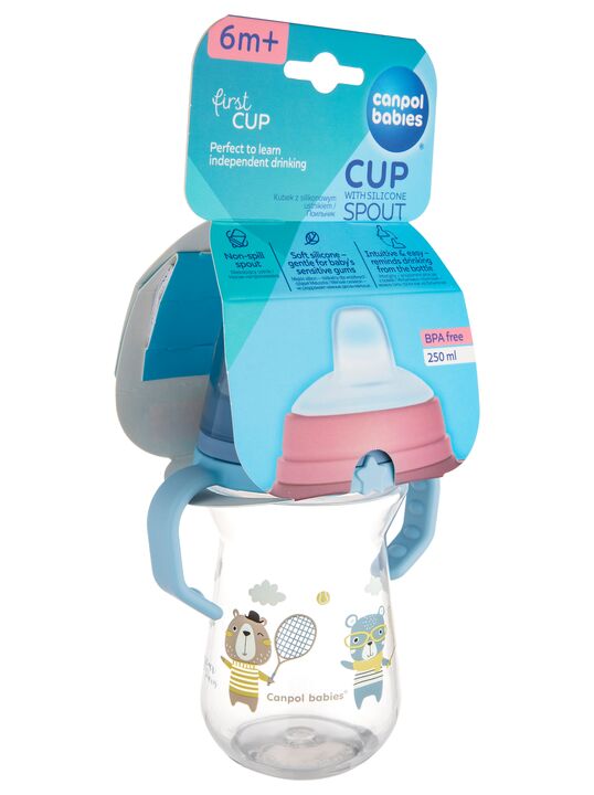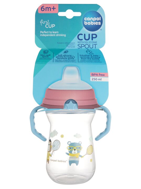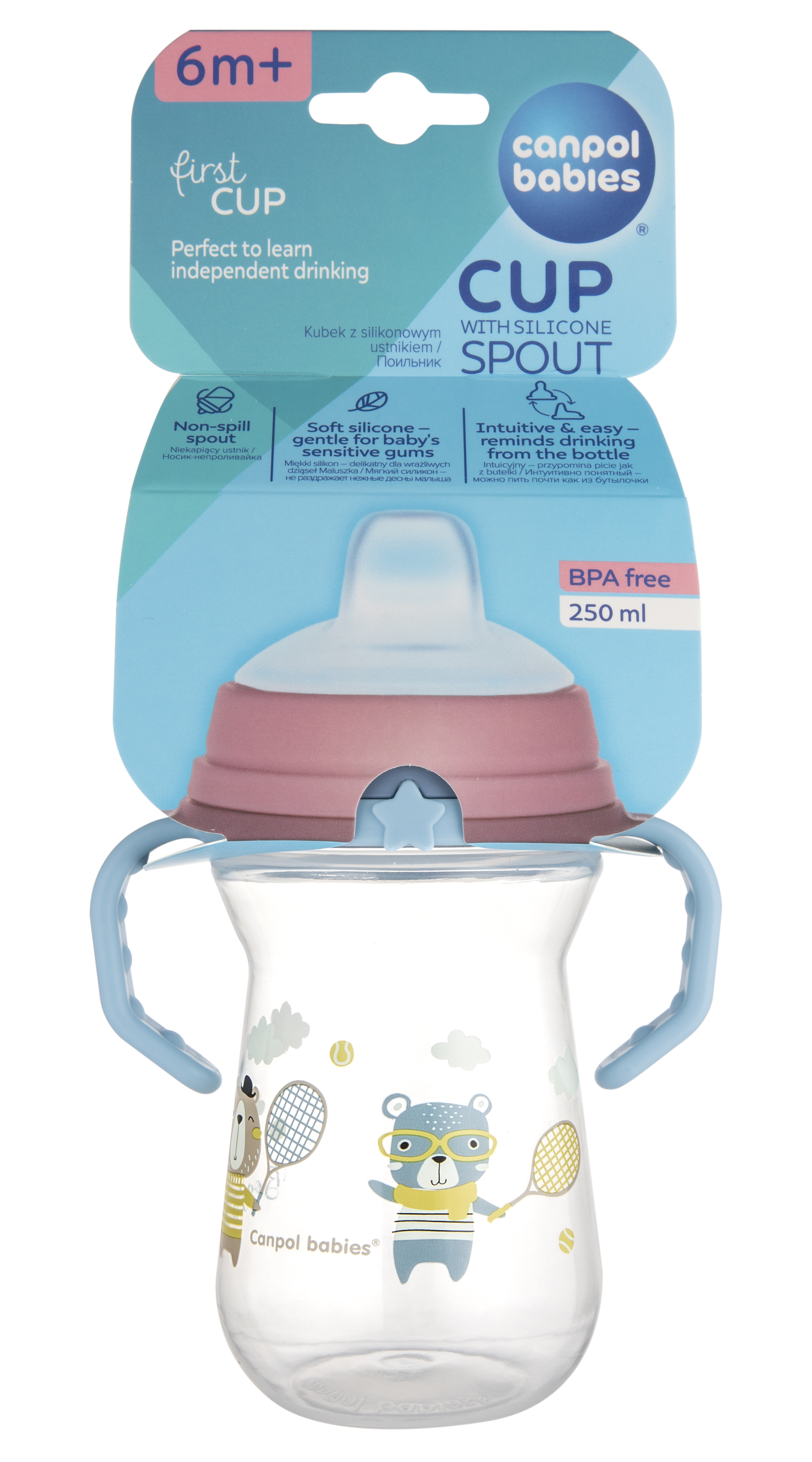 Новый поильник-непроливайка Canpol babies FirstCup BONJOUR PARIS с мягким ночиком оказывает поддержку в правильном развитии полости рта, речи и прикуса у 99% детей*. Идеально подходит для детей, которые начинают учиться пить самостоятельно. Подходит для детей от 6 месяцев! Он оснащен удобными ручками, которые помогают ребенку держатьпоильник. Широкая горловина облегчает мытье и налив жидкости. Мягкий силиконовый носик не раздражает нежные десны ребенка. Сняв ручки, вы можете легко превратить поильник в бутылочку с водой для детей старшего возраста. Плотная крышка защищает носик от грязи.