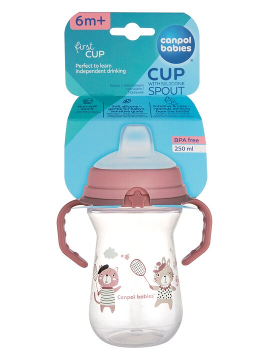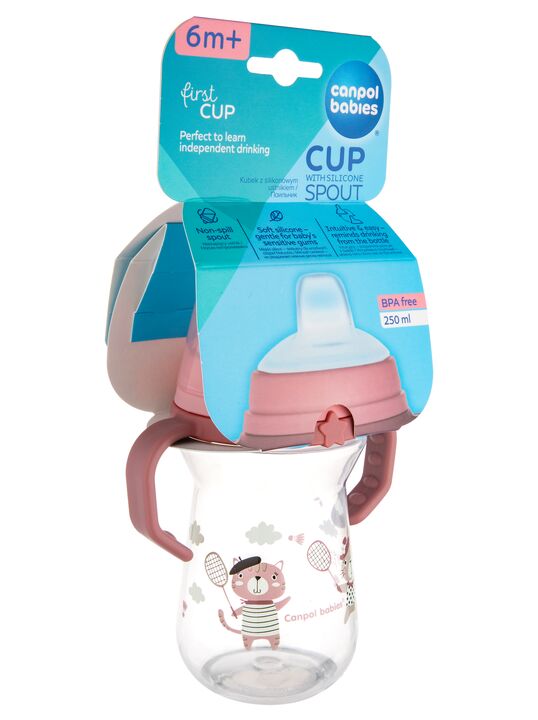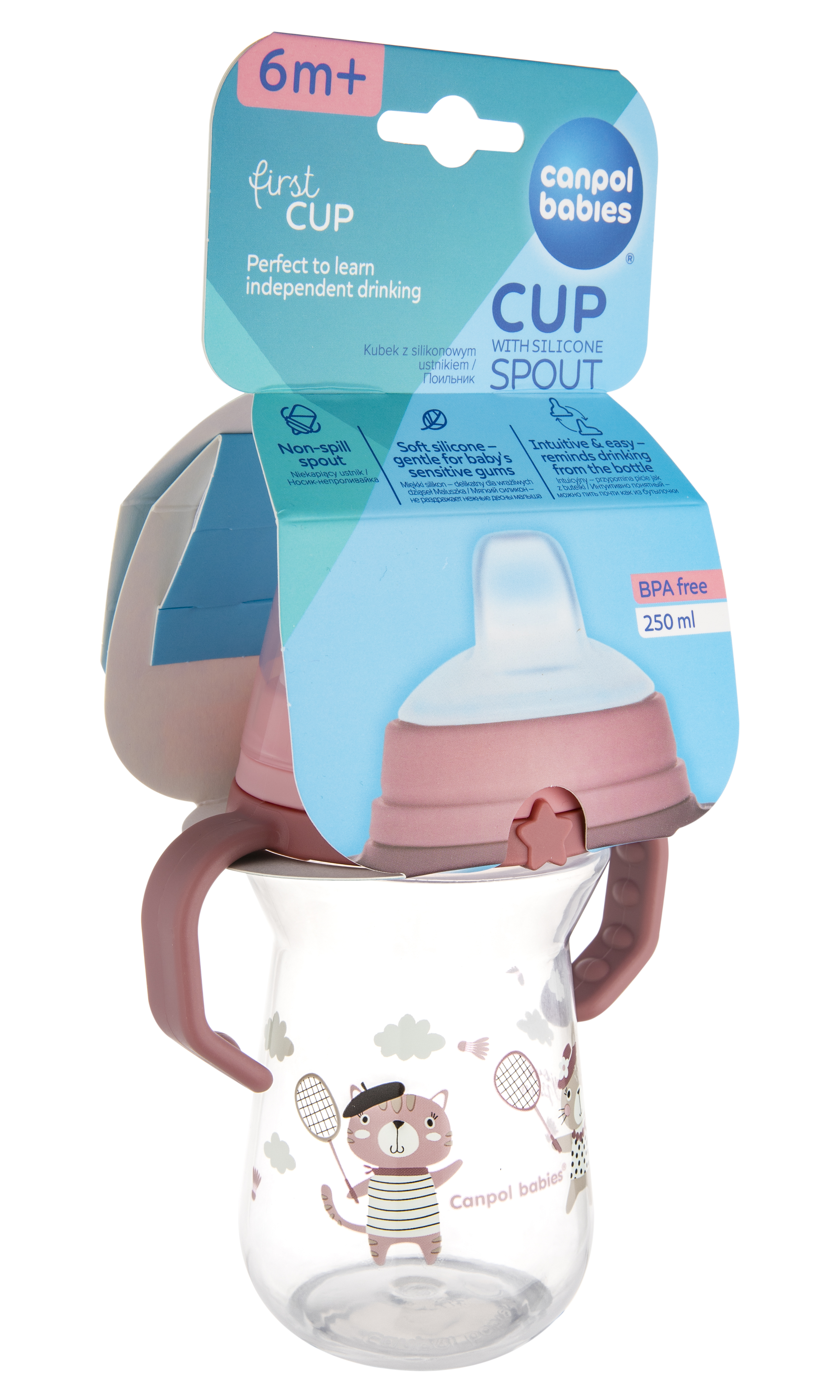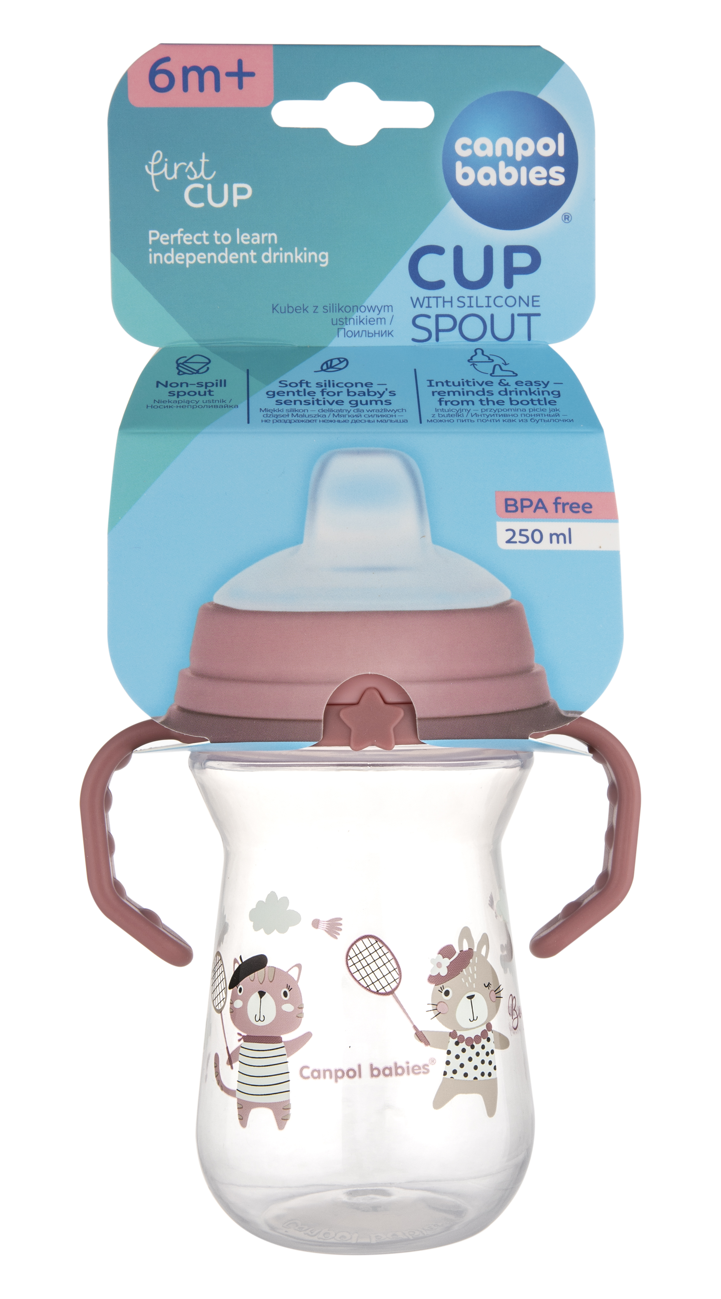 Новый поильник-непроливайка Canpol babies FirstCup BONJOUR PARIS с мягким ночиком оказывает поддержку в правильном развитии полости рта, речи и прикуса у 99% детей*. Идеально подходит для детей, которые начинают учиться пить самостоятельно. Подходит для детей от 6 месяцев! Он оснащен удобными ручками, которые помогают ребенку держатьпоильник. Широкая горловина облегчает мытье и налив жидкости. Мягкий силиконовый носик не раздражает нежные десны ребенка. Сняв ручки, вы можете легко превратить поильник в бутылочку с водой для детей старшего возраста. Плотная крышка защищает носик от грязи.