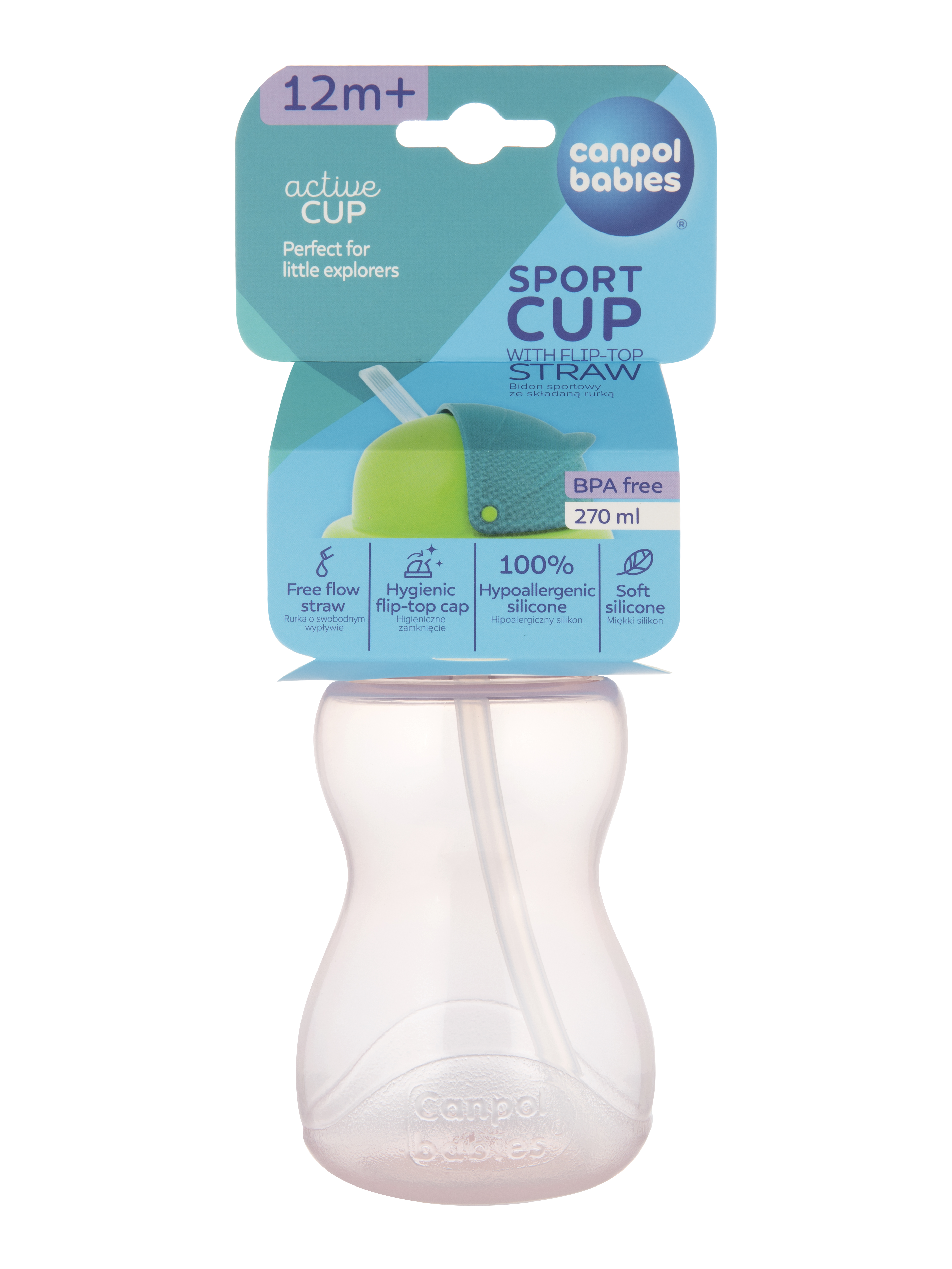 Детский поильник Canpol babies серии SportCup с силиконовой трубочкой идеально подойдет для детей, которые уже научились пить самостоятельно. Практичная красочная детская бутылка для воды отлично подходит для прогулок и путешествий. Бутылочка оснащена удобной силиконовой трубочкой. Сменная трубочка поильника мягкая и гипоаллергенная. Практичная откидная крышка защищает трубочку от загрязнения. Подвижная часть крышки позволяет легко и удобно спрятать трубочку, предотвращая неконтролируемое проливание напитка. Контурная форма поильника позволяет легко держать его в руках маленького ребенка. Не содержит Бисфенол А. Поильники для питья маленьких детей - прекрасный подарок на 1 годик или ребенку на новый год, день рождения. Для малышей от 1 года. Детские бутылки Canpol babies можно мыть в посудомоечной машине, но без трубочки, т.к. моющие и чистящие вещества могут ее повредить. *Детский поильник можно использовать в микроволновой печи. Разработано в Польше.