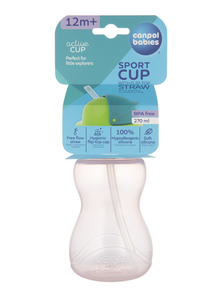 Canpol поильник спортивный 270 мл с силиконовой трубочкой Flip-Top розовый 56/109_pin2