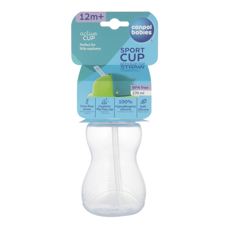 Детский поильник Canpol babies серии SportCup с силиконовой трубочкой идеально подойдет для детей, которые уже научились пить самостоятельно. Практичная красочная детская бутылка для воды отлично подходит для прогулок и путешествий. Бутылочка оснащена удобной силиконовой трубочкой. Сменная трубочка поильника мягкая и гипоаллергенная. Практичная откидная крышка защищает трубочку от загрязнения. Подвижная часть крышки позволяет легко и удобно спрятать трубочку, предотвращая неконтролируемое проливание напитка. Контурная форма поильника позволяет легко держать его в руках маленького ребенка. Не содержит Бисфенол А. Поильники для питья маленьких детей - прекрасный подарок на 1 годик или ребенку на новый год, день рождения. Для малышей от 1 года. Детские бутылки Canpol babies можно мыть в посудомоечной машине, но без трубочки, т.к. моющие и чистящие вещества могут ее повредить. *Детский поильник можно использовать в микроволновой печи. Разработано в Польше.