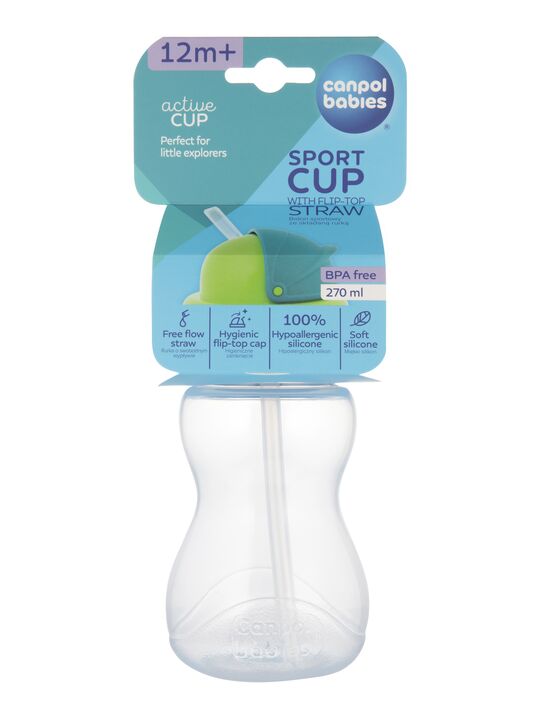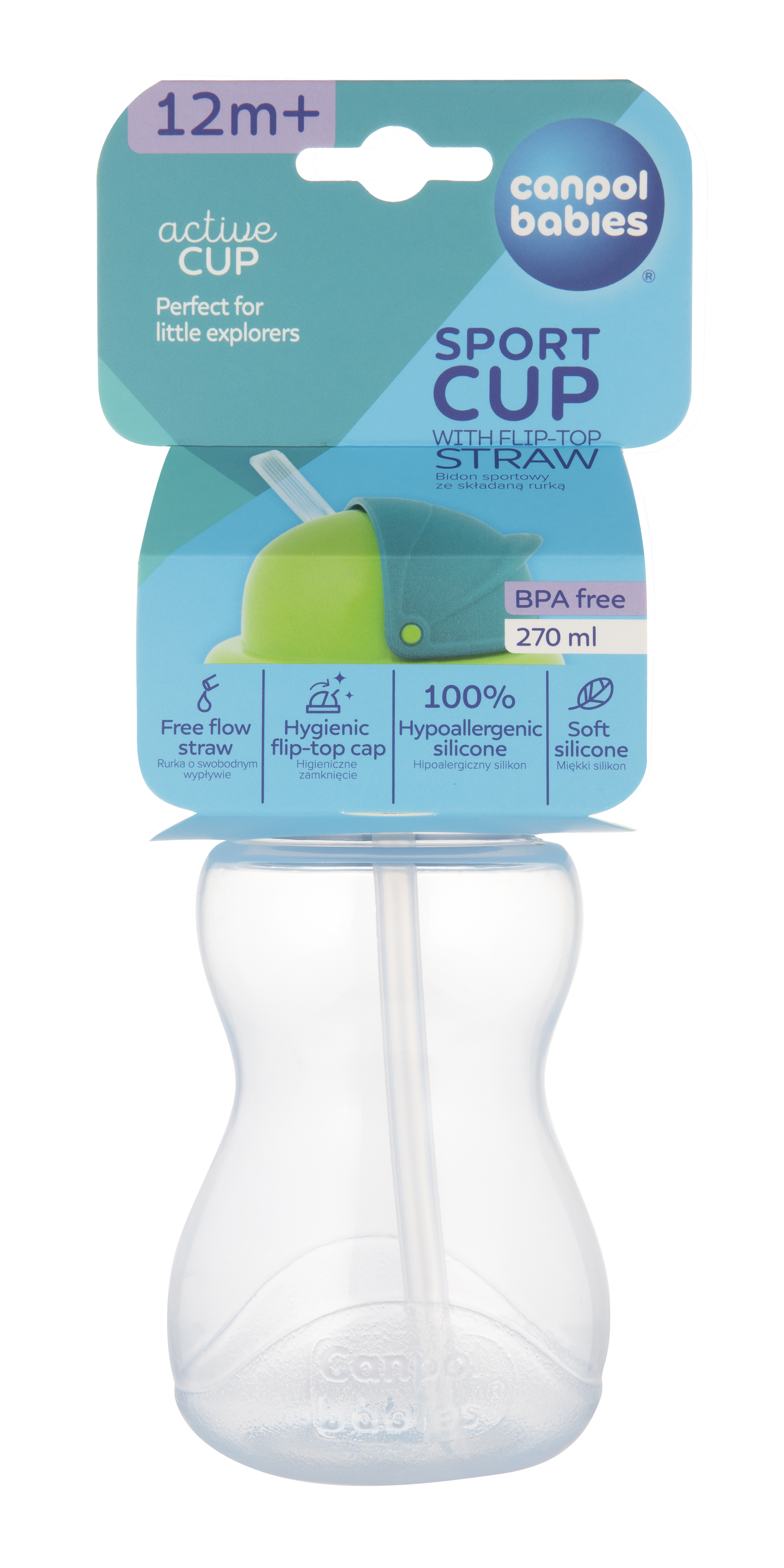 Детский поильник Canpol babies серии SportCup с силиконовой трубочкой идеально подойдет для детей, которые уже научились пить самостоятельно. Практичная красочная детская бутылка для воды отлично подходит для прогулок и путешествий. Бутылочка оснащена удобной силиконовой трубочкой. Сменная трубочка поильника мягкая и гипоаллергенная. Практичная откидная крышка защищает трубочку от загрязнения. Подвижная часть крышки позволяет легко и удобно спрятать трубочку, предотвращая неконтролируемое проливание напитка. Контурная форма поильника позволяет легко держать его в руках маленького ребенка. Не содержит Бисфенол А. Поильники для питья маленьких детей - прекрасный подарок на 1 годик или ребенку на новый год, день рождения. Для малышей от 1 года. Детские бутылки Canpol babies можно мыть в посудомоечной машине, но без трубочки, т.к. моющие и чистящие вещества могут ее повредить. *Детский поильник можно использовать в микроволновой печи. Разработано в Польше.
