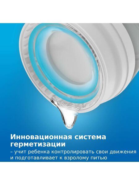 Инновационная система герметизации. Позволяет пить, не проливая. Но это не поильник непроливайка. Если обучающий поильник сильно потрясти или уронить, из него может вылиться немного жидкости.