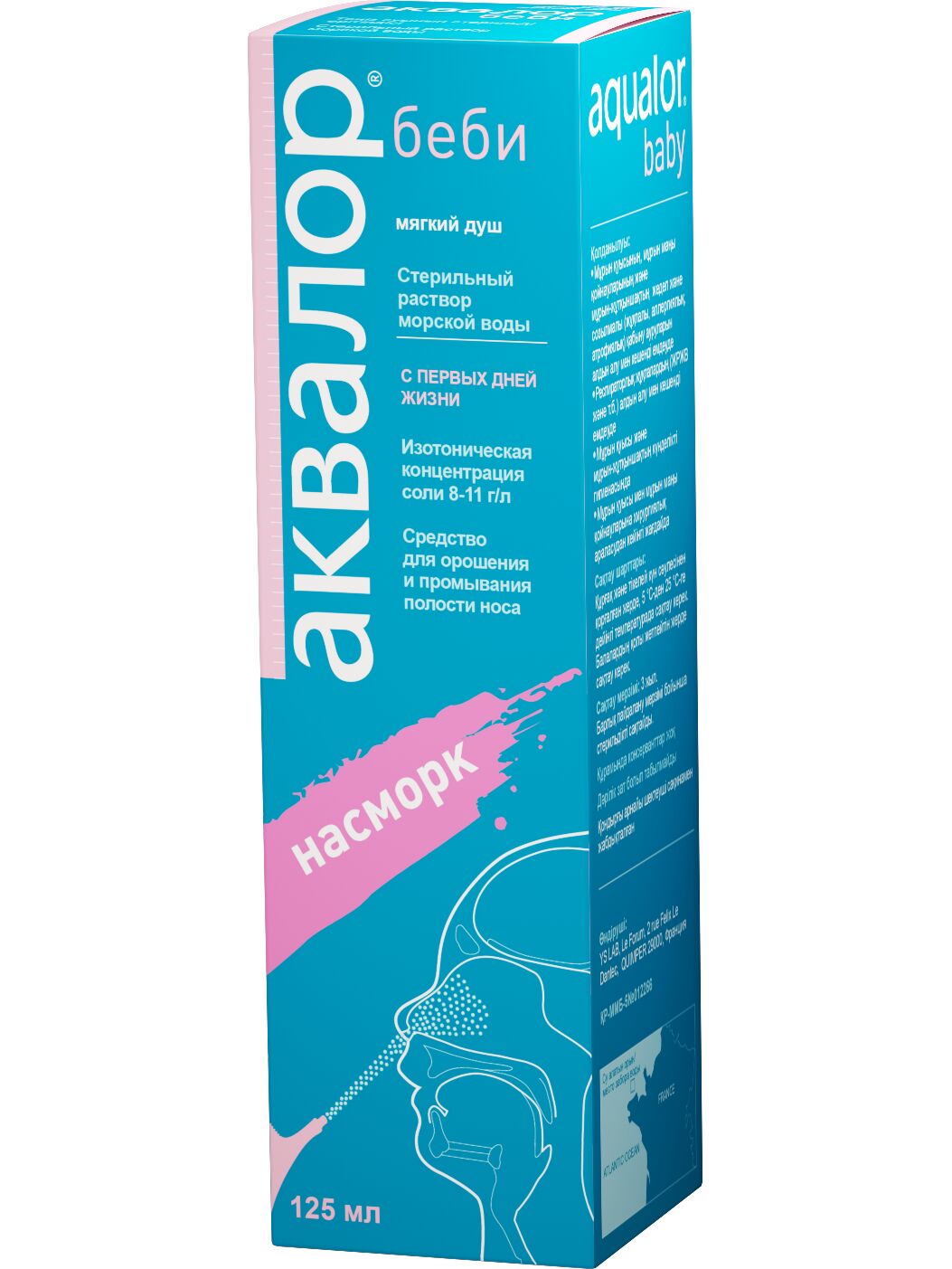 Средство для орошения и промывания полости носа для детей и взрослых «Аквалор® беби», применяется для профилактики и комплексного лечения острых и хронических воспалительных заболеваний полости носа, околоносовых пазух и носоглотки (инфекционных, аллергических, атрофических), состояний после хирургических вмешательств в полости носа и околоносовых пазух, в период подъема простудных заболеваний, а также для ежедневной гигиены полости носа и носоглотки.