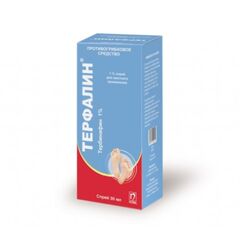 Торговое наименование   Терфалин®   Международное непатентованное название  Тербинафин   Лекарственная форма, дозировка крем 1% , 15г  Фармакотерапевтическая группа Дерматология. Противогрибковые препараты для лечения заболеваний кожи. Противогрибковые...